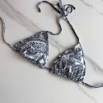 这款比基尼上衣采用白色和黑色技术面料制成,采用三角形剪裁,并在颈部和背部系带,以实现定制合身。