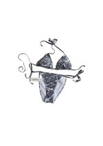 比基尼展示了本季的旗舰图案 Plan de Paris,其灵感源自 House 档案,并围绕 Dior 历史悠久的作品构建蒙田大道地址。下装采用白色和黑色高科技面料制成,低胸款式配有带子,可在两侧打结,确保完美贴合。可调节侧系带