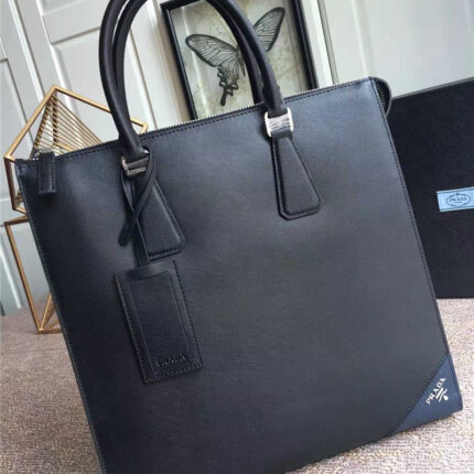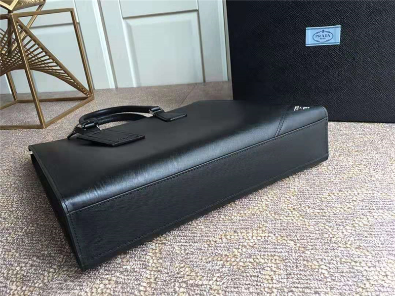 - Prada普拉达男包 Prada男士公文包 黑角唛 普拉达竖款手提包 黑色