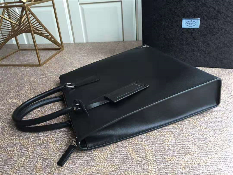 Prada普拉达男包 Prada男士公文包 黑角唛 普拉达竖款手提包 黑色