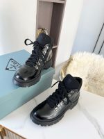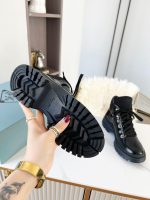 Prada 剪羊毛高帮运动鞋黑色女式 PRD