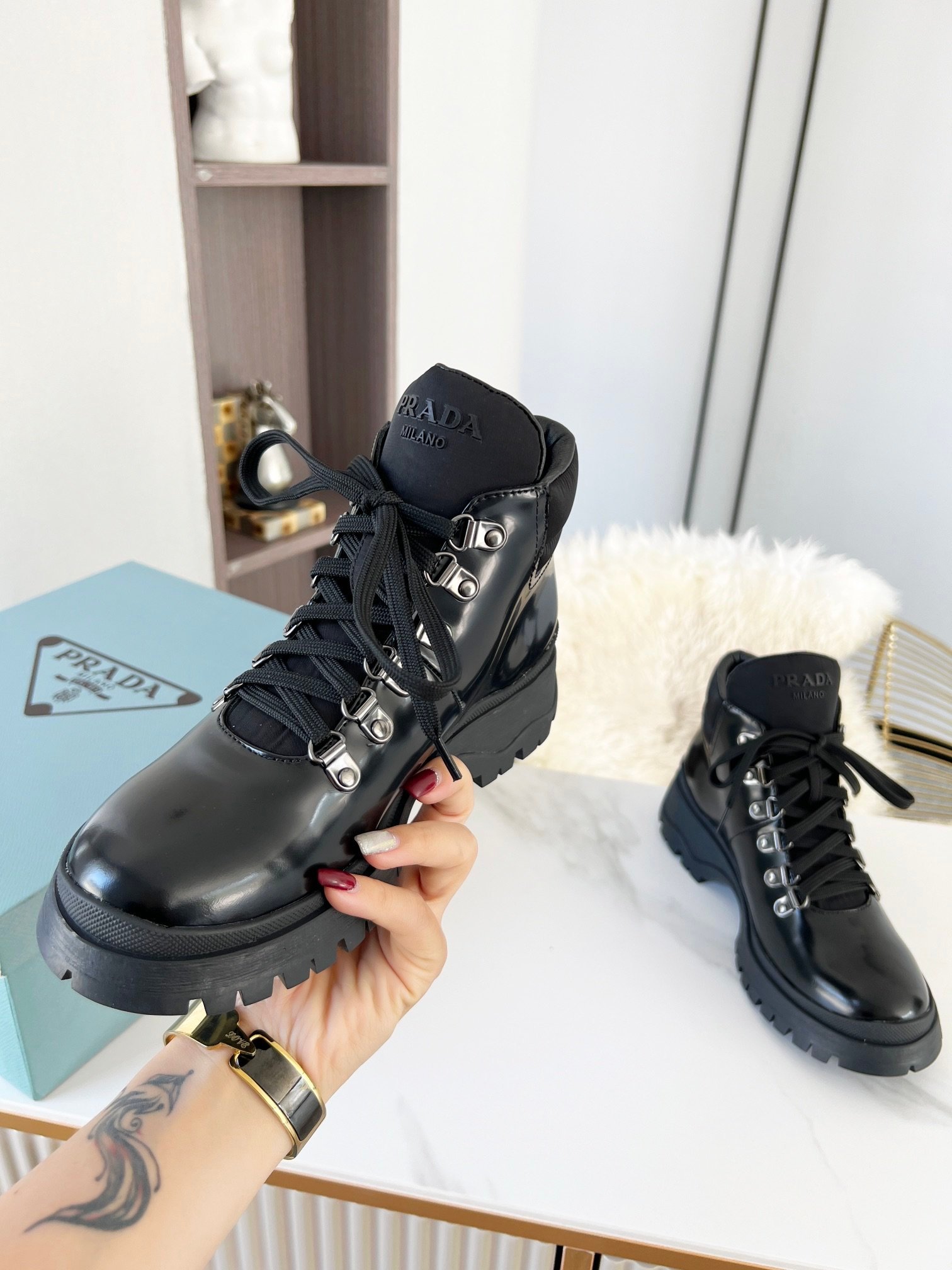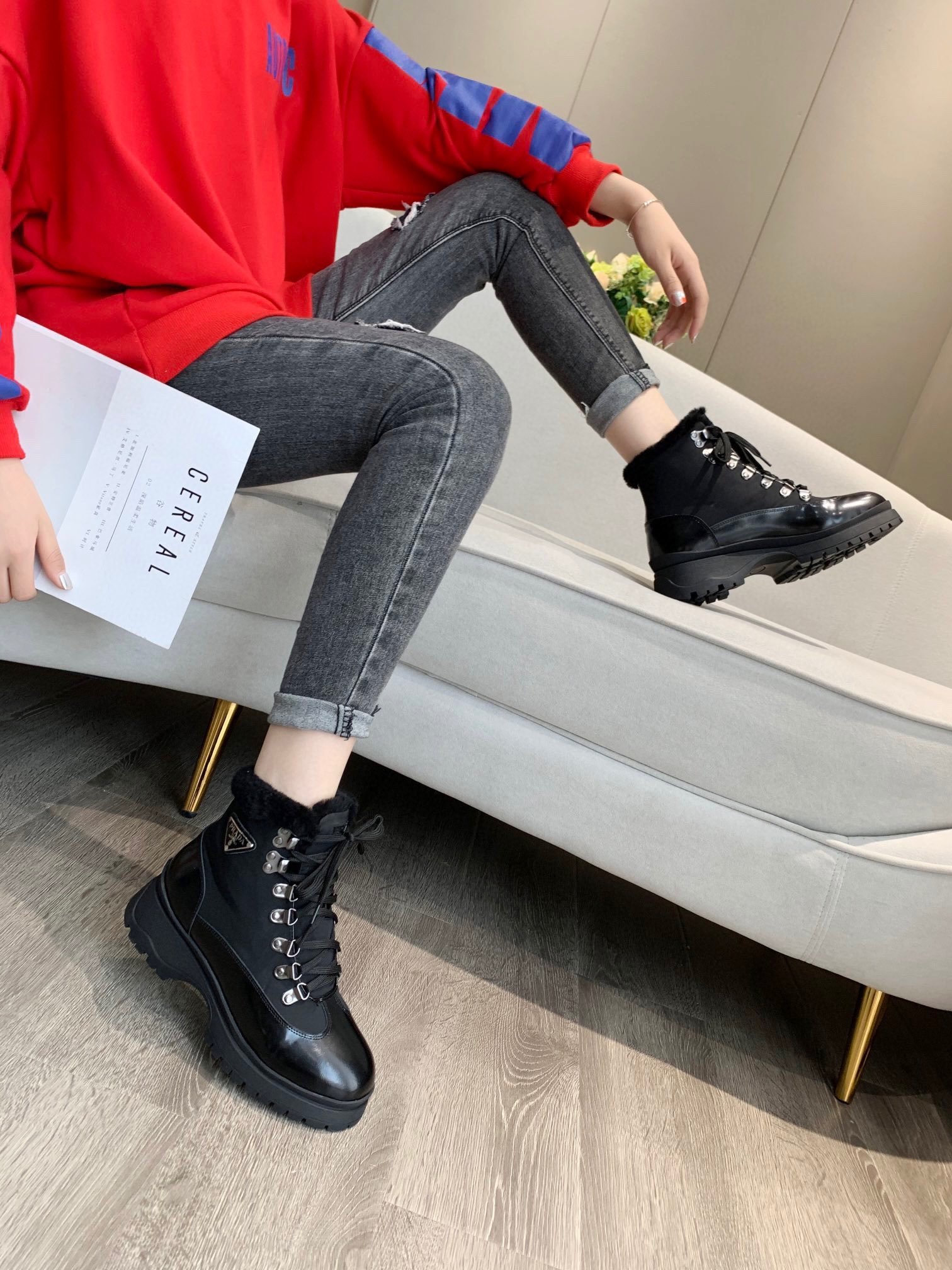 Prada 女士剪羊毛高帮运动鞋 黑色 PRD