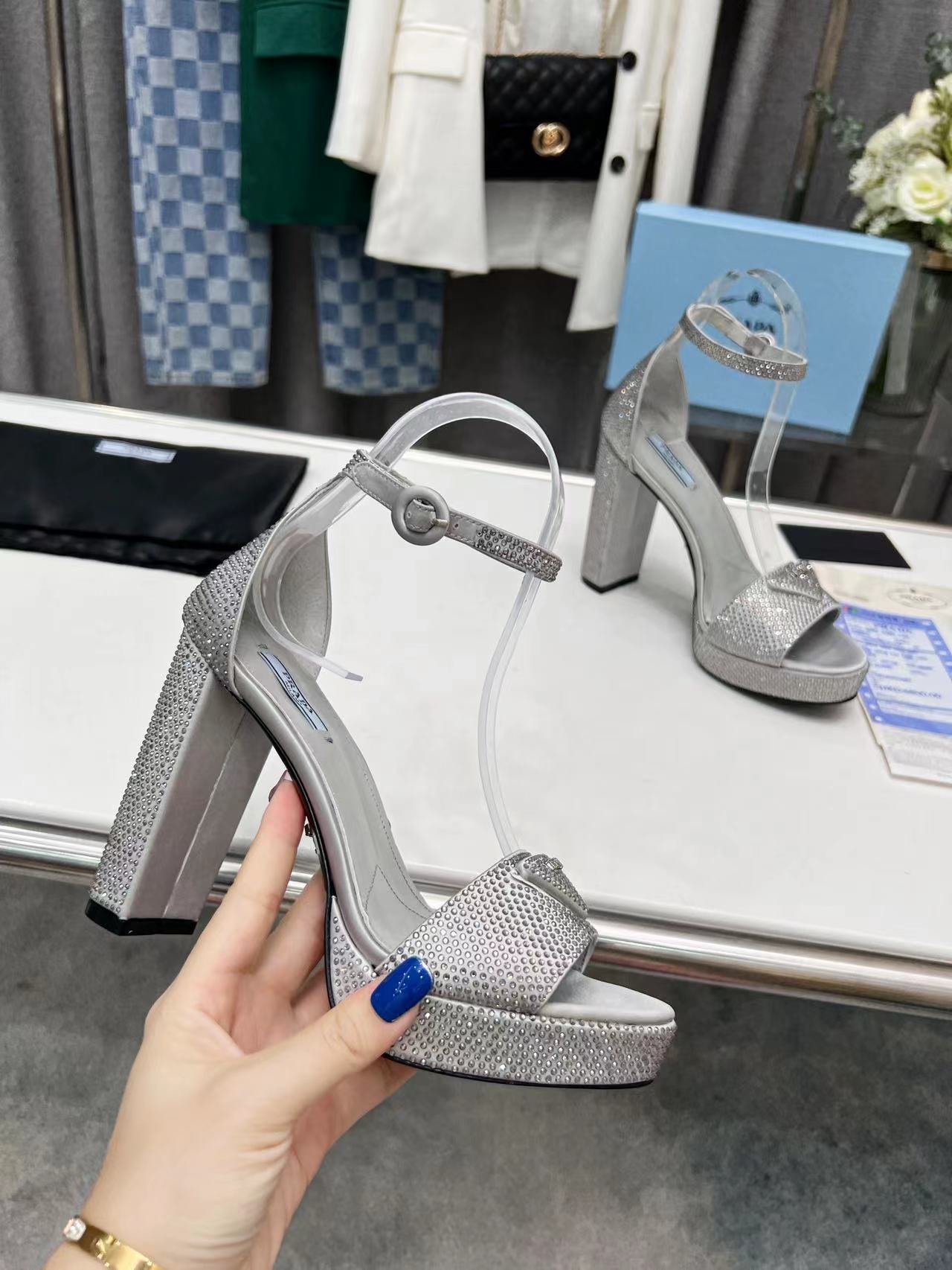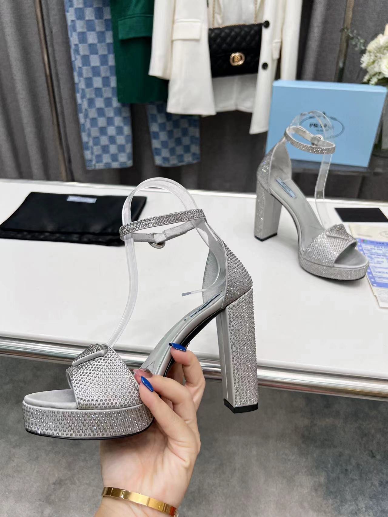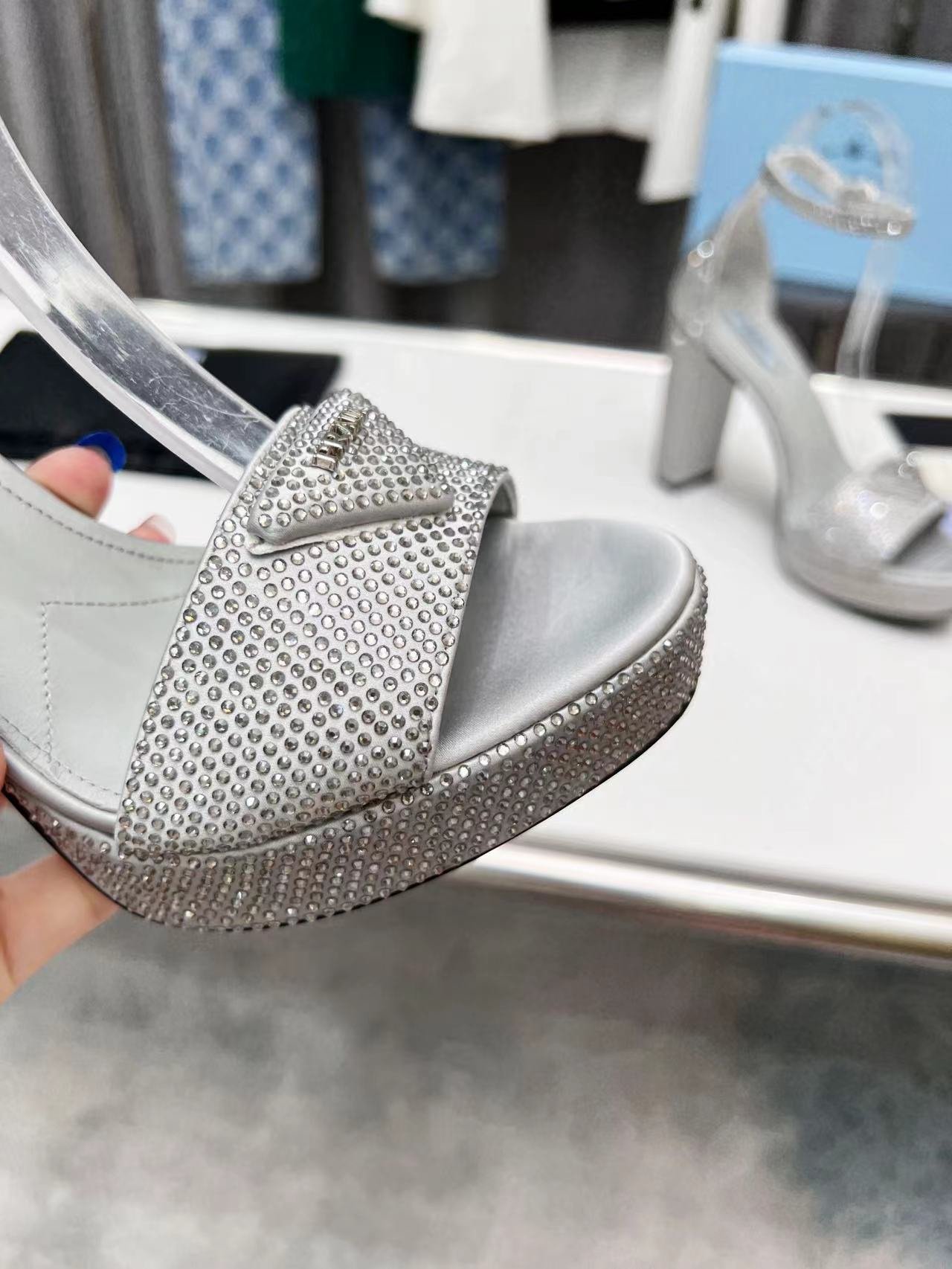 Prada 女士水晶缎面厚底凉鞋 银色 5.3 英寸/135 毫米 PRD
