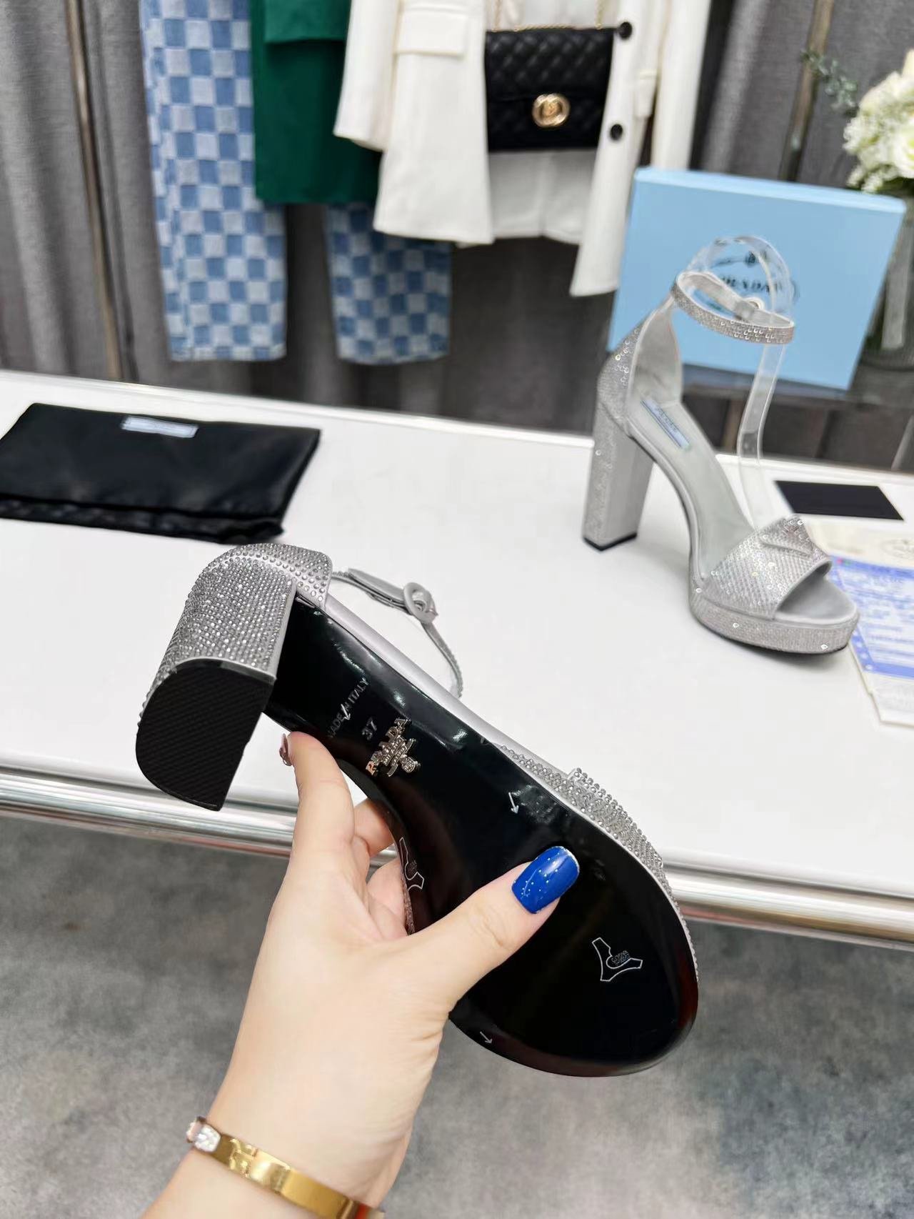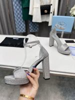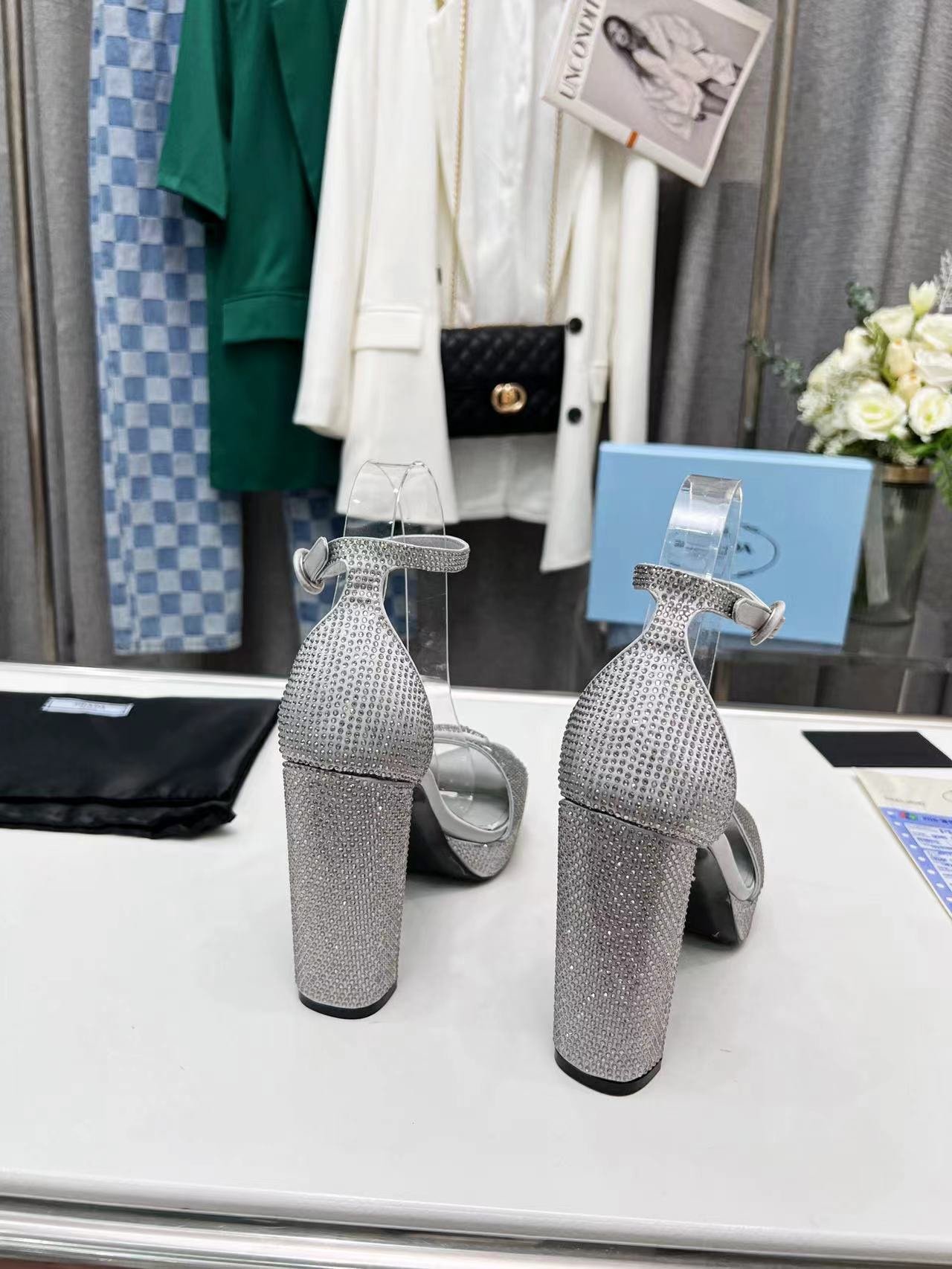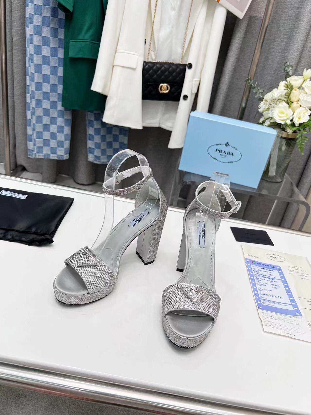 Prada 女士水晶缎面厚底凉鞋 银色 5.3 英寸/135 毫米 PRD
