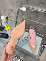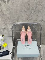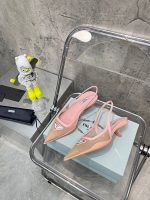 Prada 女士粉色网布露跟高跟鞋 PRD
