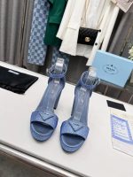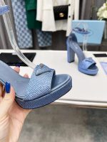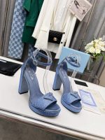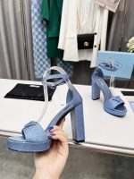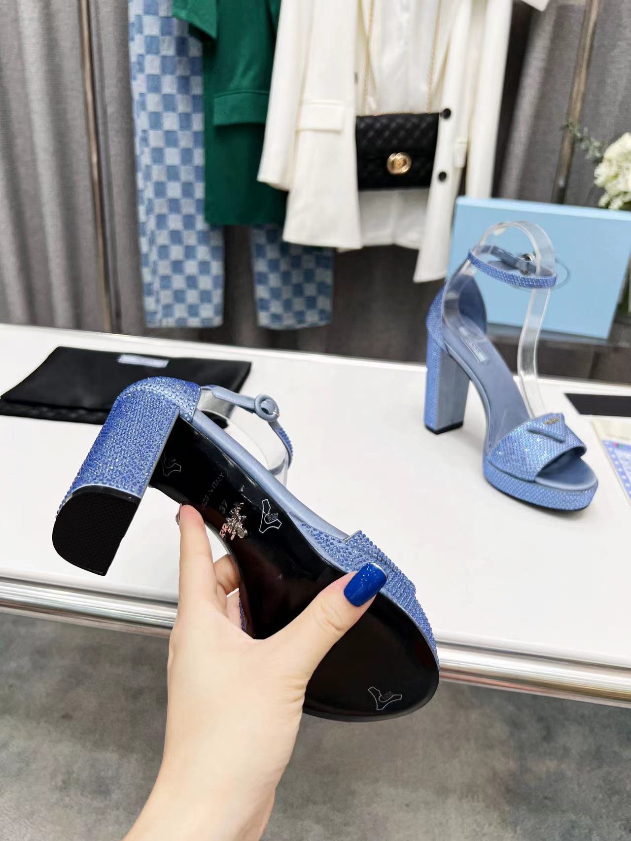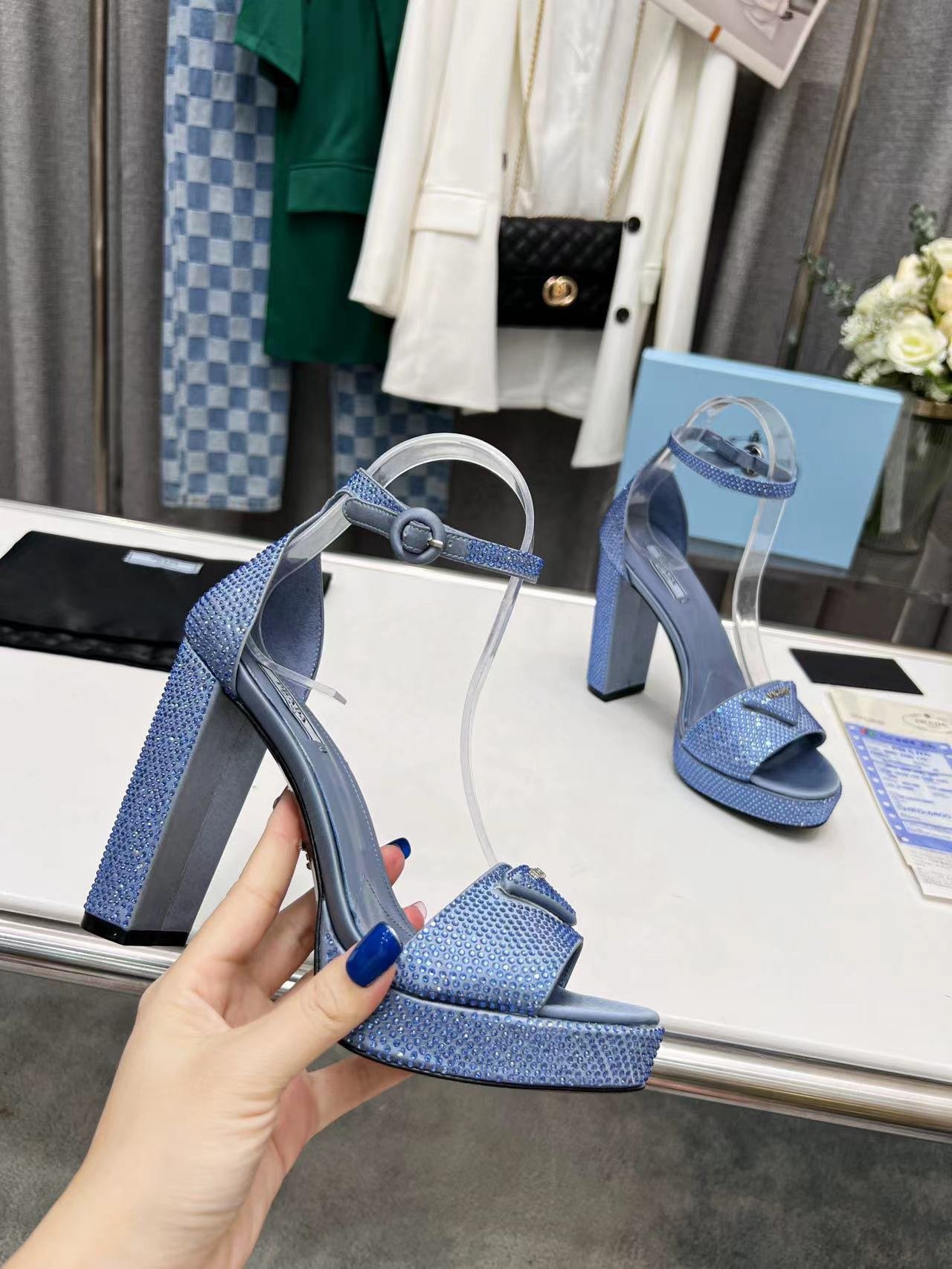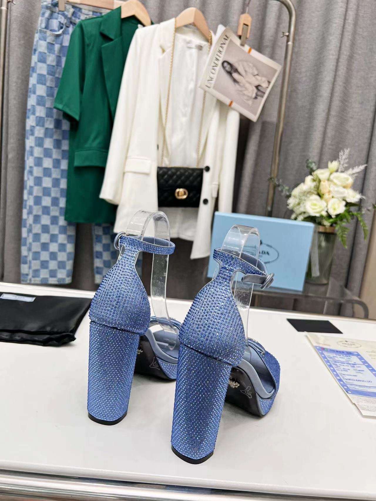 Prada 女士蓝色水晶缎面厚底凉鞋 5.3 英寸/135 毫米 PRD