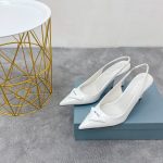 Prada 女式专利露跟高跟鞋 白色 3.5 英寸/90 毫米 PRD