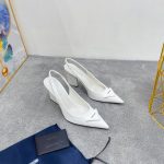 新款式将品牌标志性三角形转变为略带衬垫的细节,并饰有丝网印刷的 Prada 徽标。几何元素装饰这些专利露跟高跟鞋的脚趾,具有精致的轮廓和优雅的魅力。