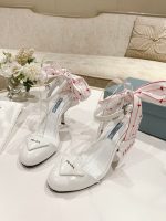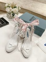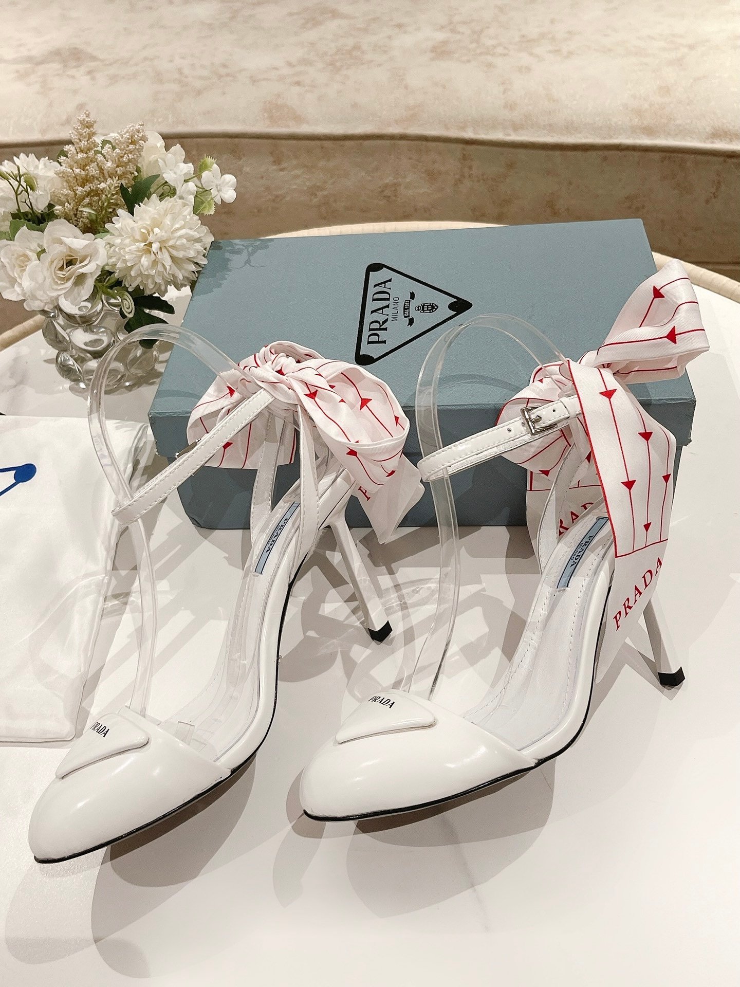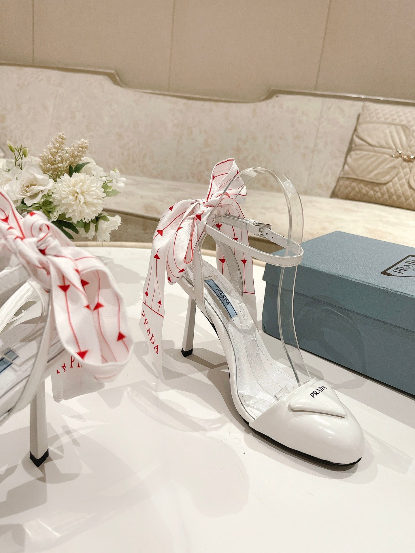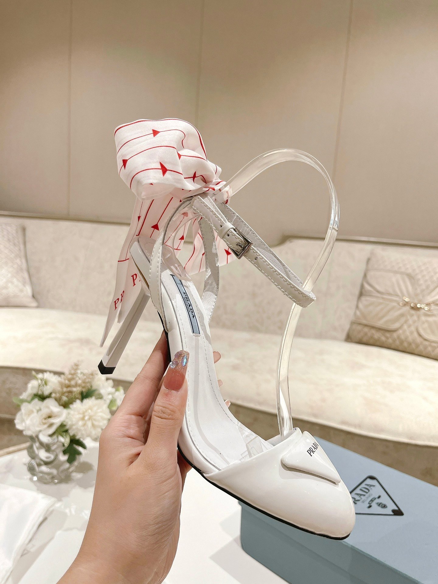 Prada 女式专利露跟高跟鞋 白色 3.5/90mm PRD