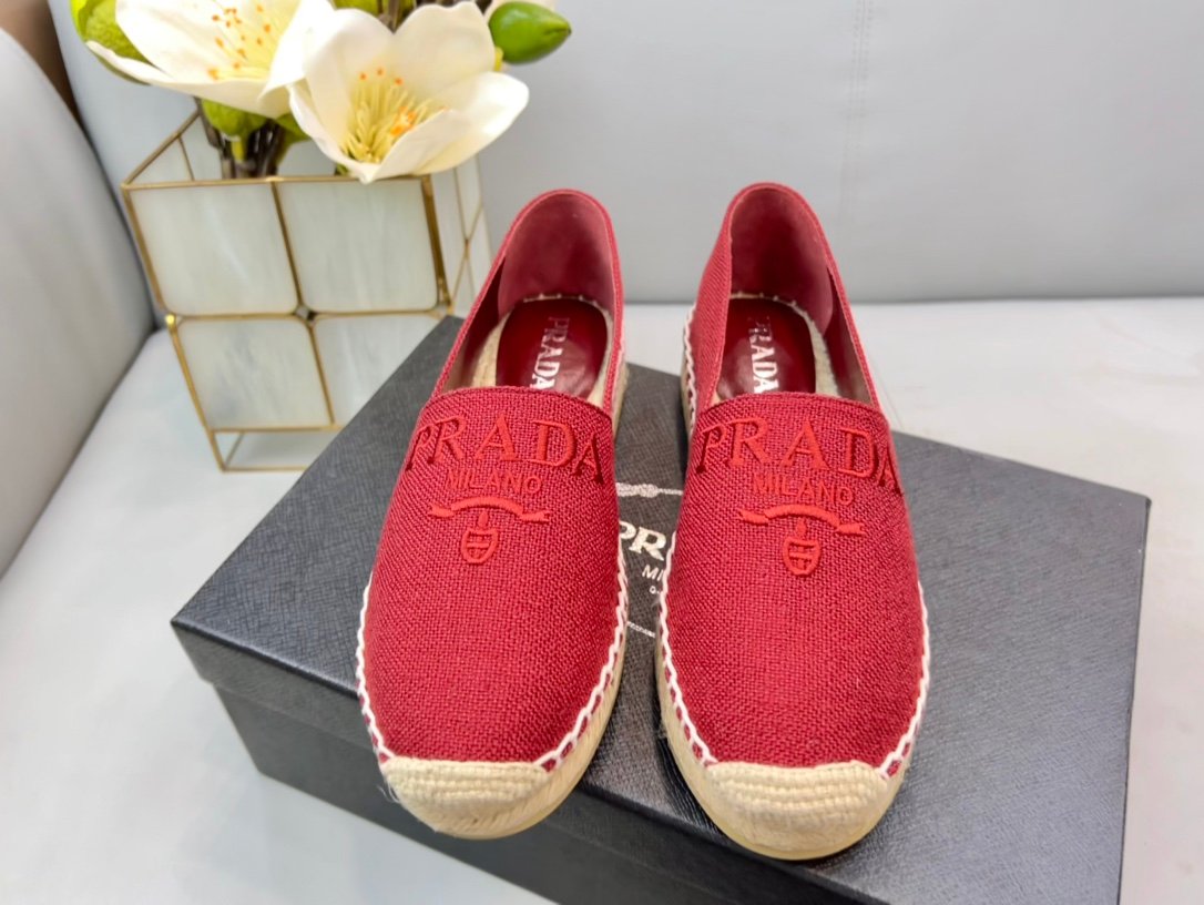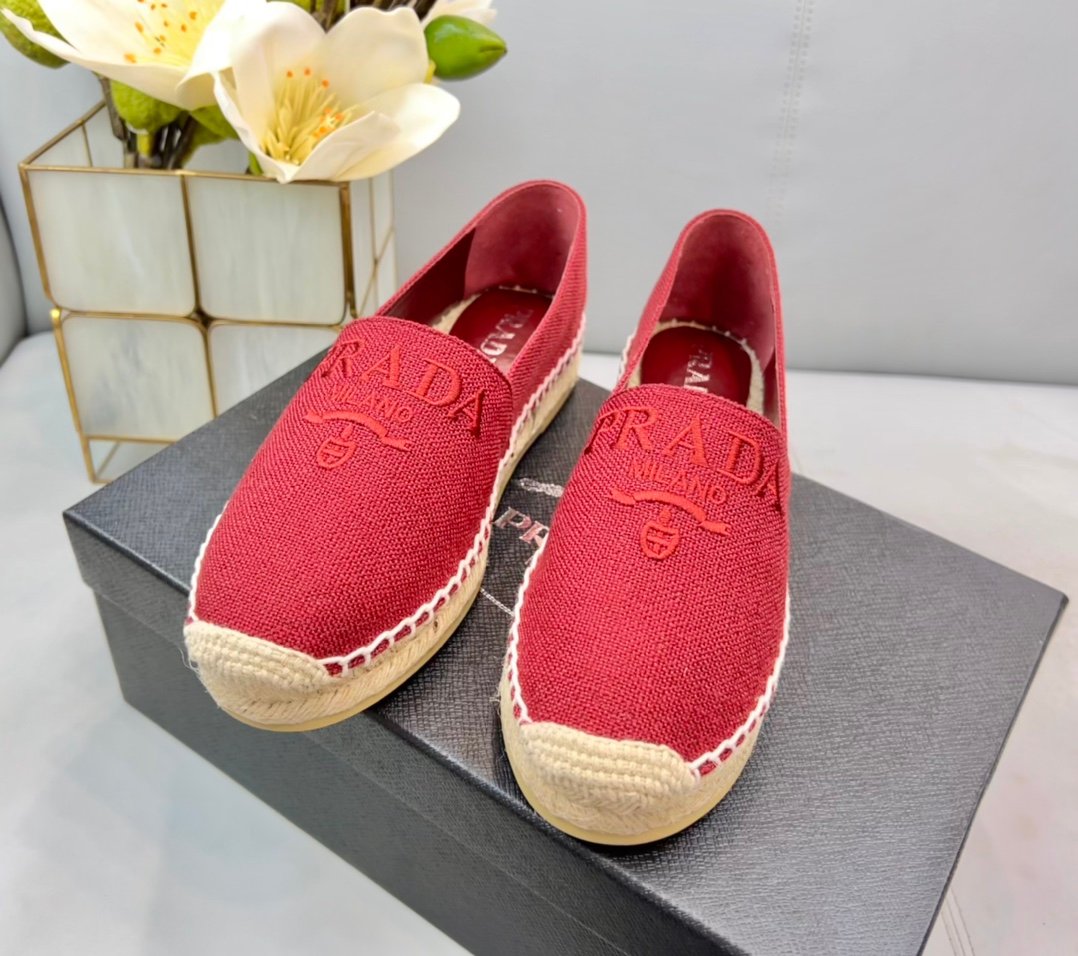 Prada 女式亚麻草编鞋 红色 0.8 英寸/20 毫米 PRD