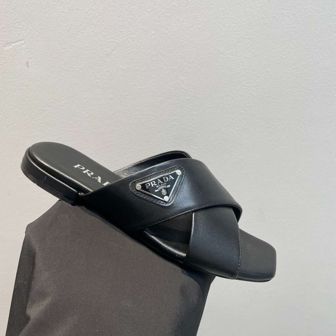 Prada 黑色交叉带拖鞋