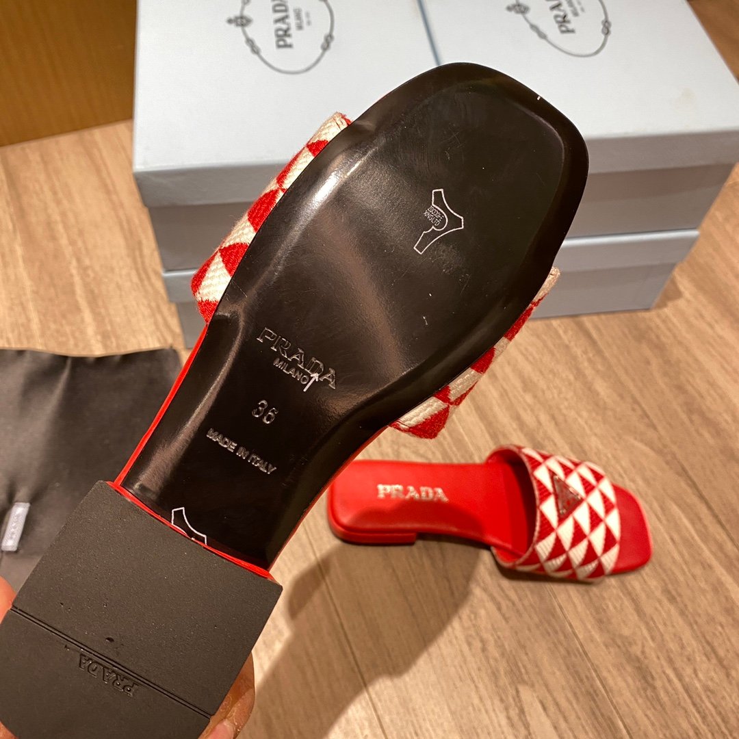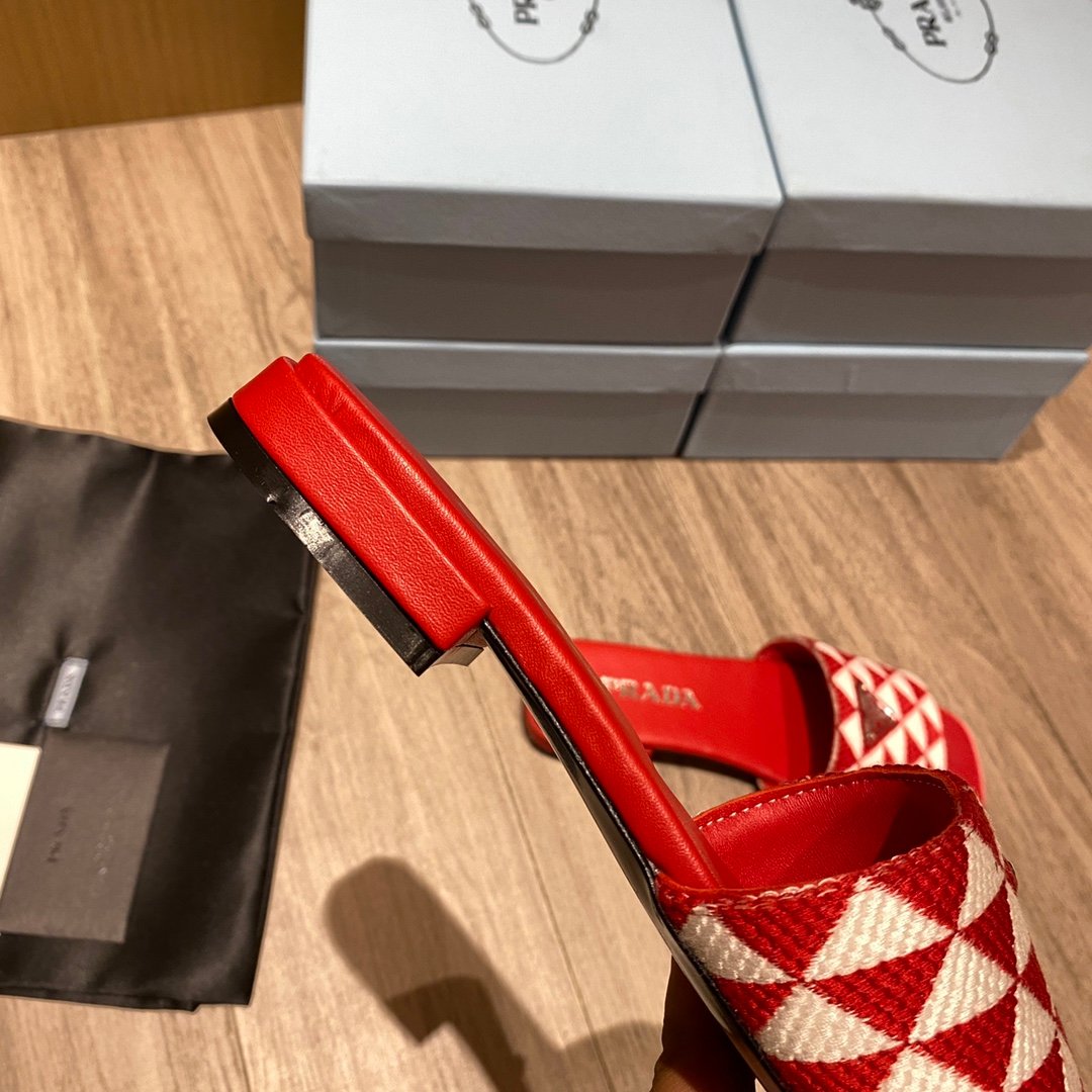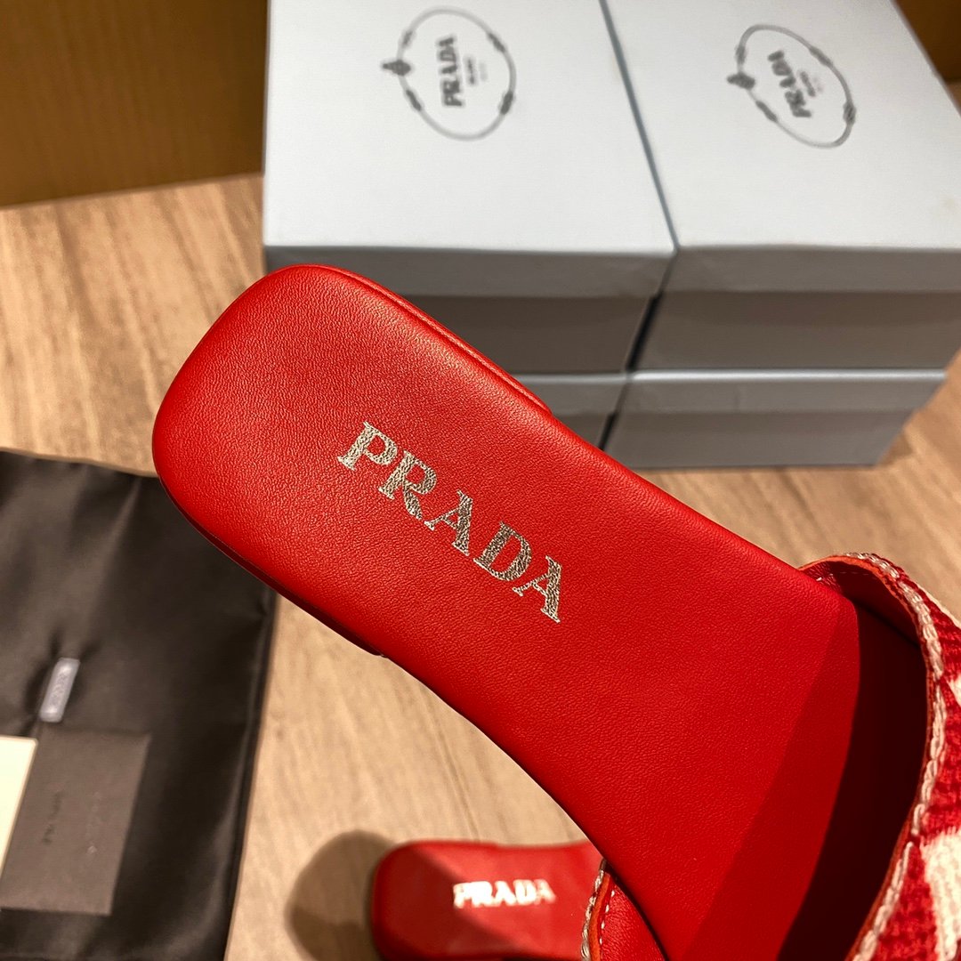 Prada 女式刺绣织物拖鞋白色/红色 0.4 英寸/10 毫米 PRD