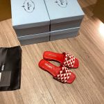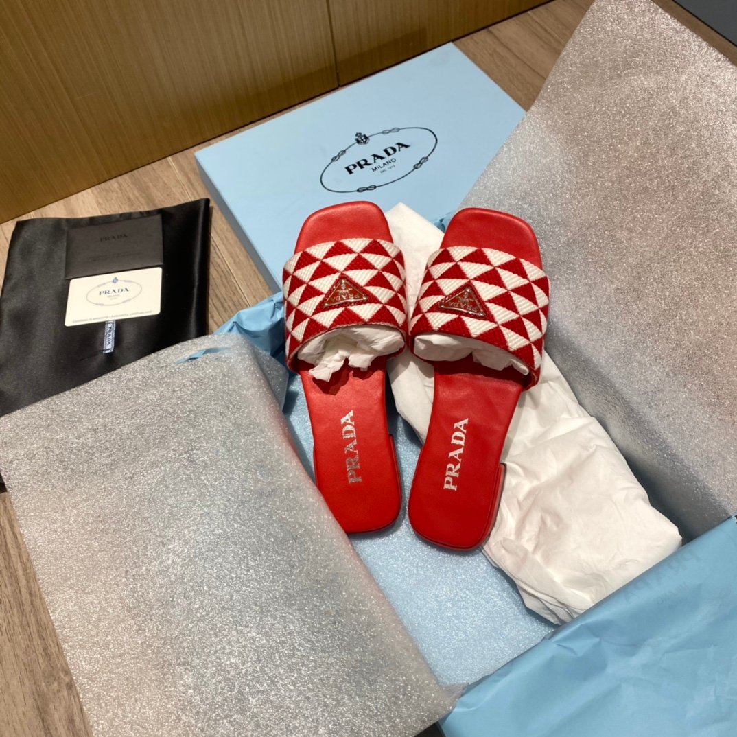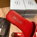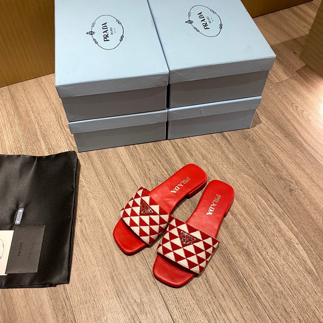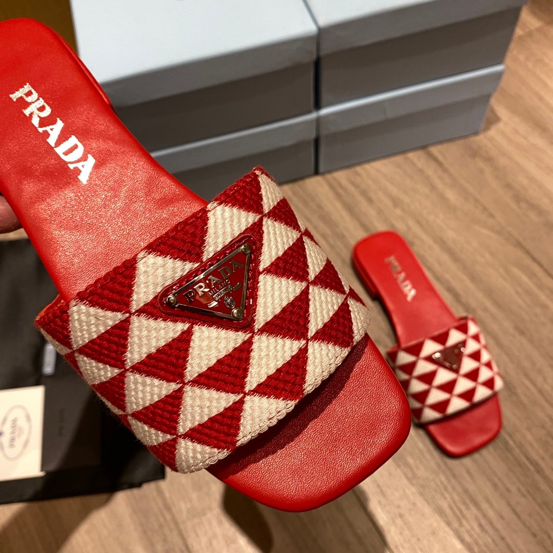 Prada 女式刺绣织物拖鞋白色/红色 0.4 英寸/10 毫米 PRD