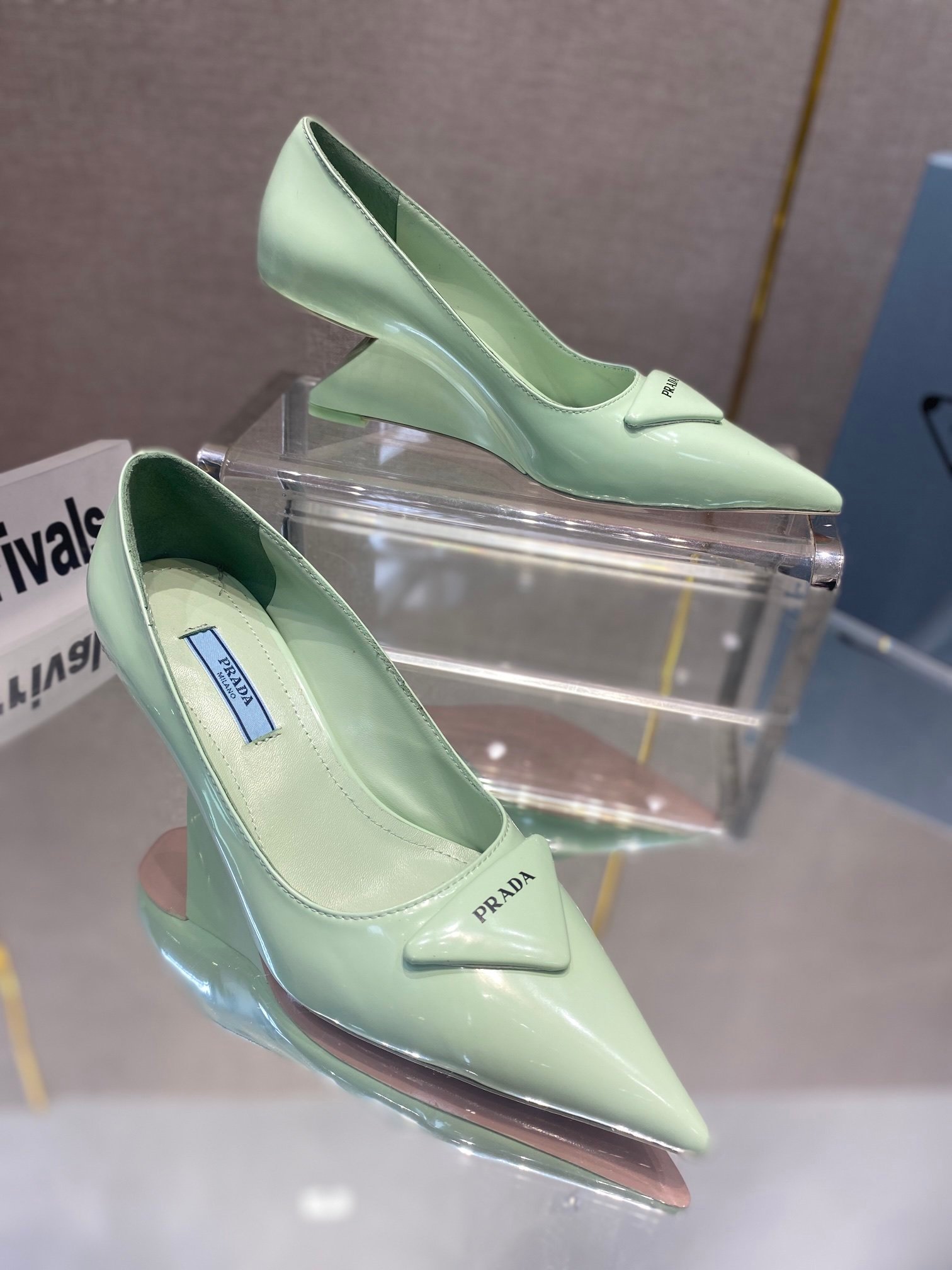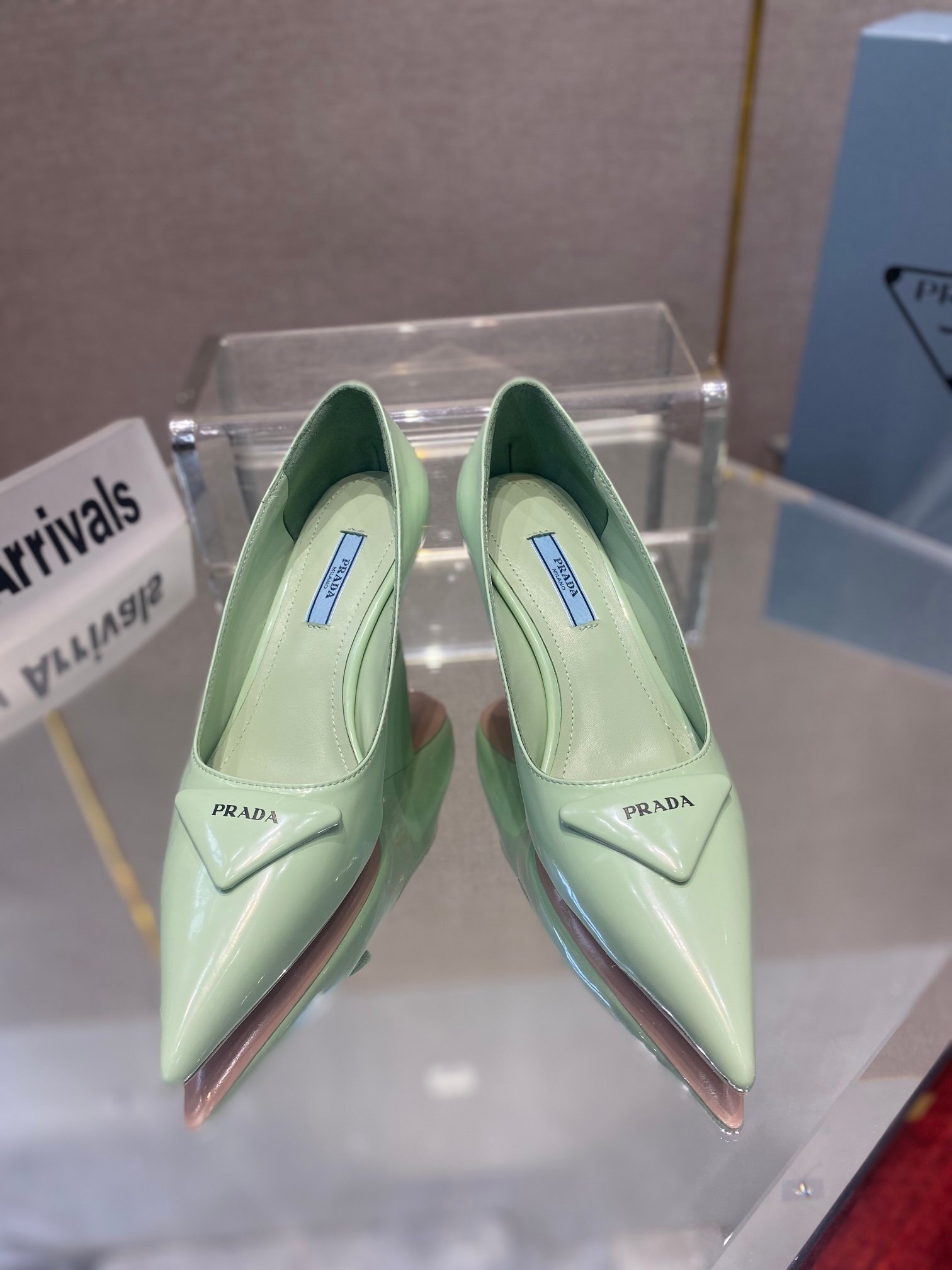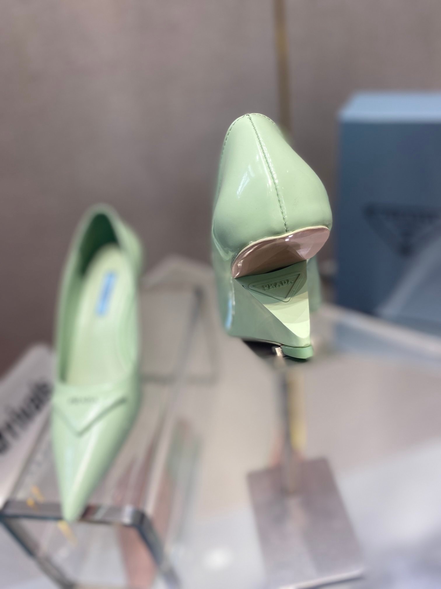 Prada 女式拉丝高跟鞋 绿色 2.6 英寸/65 毫米 PRD