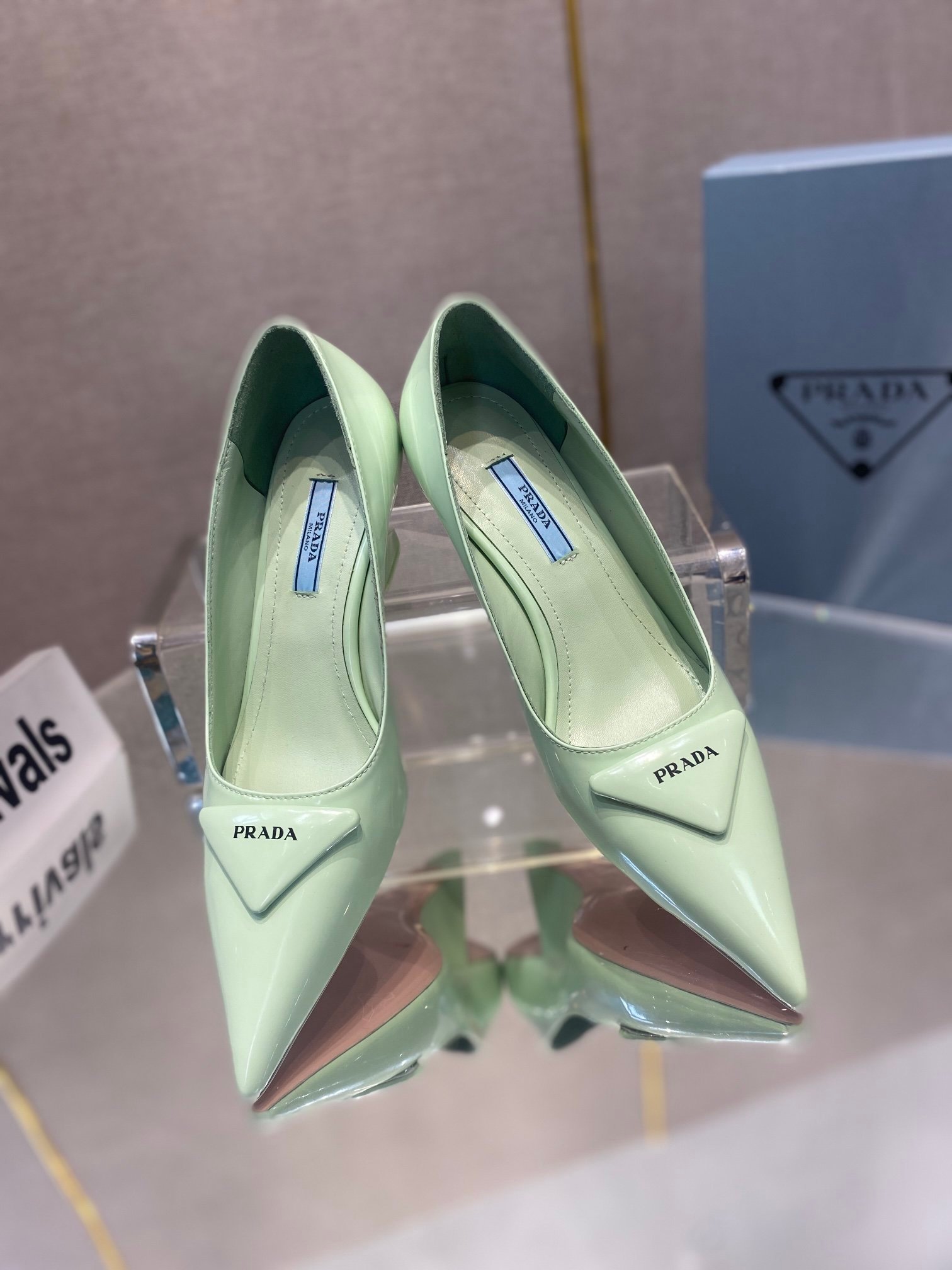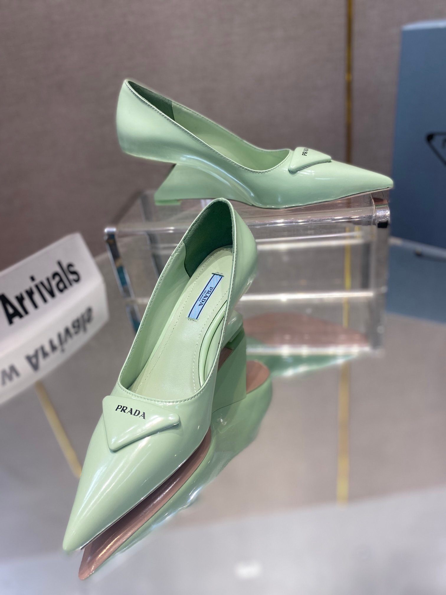 Prada 女式拉丝高跟鞋绿色 2.6 英寸/65 毫米 PRD