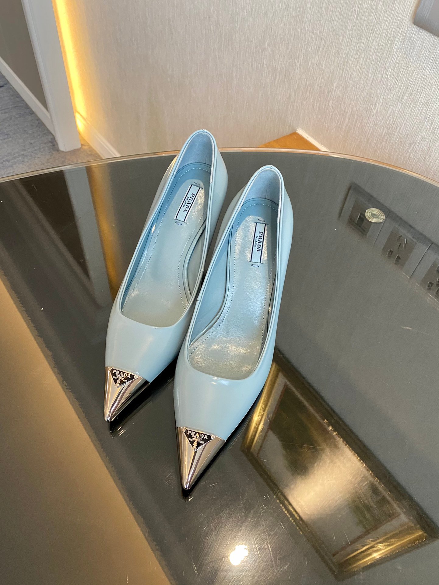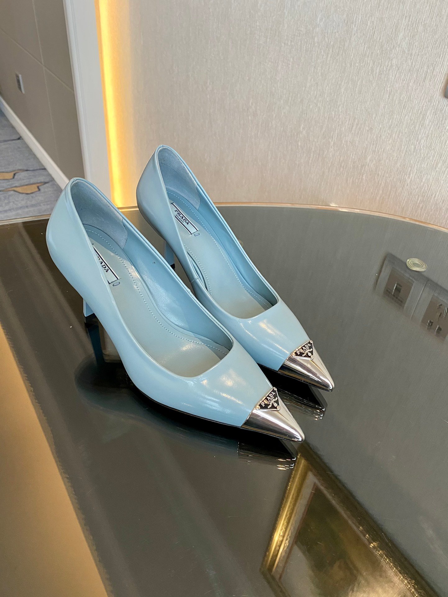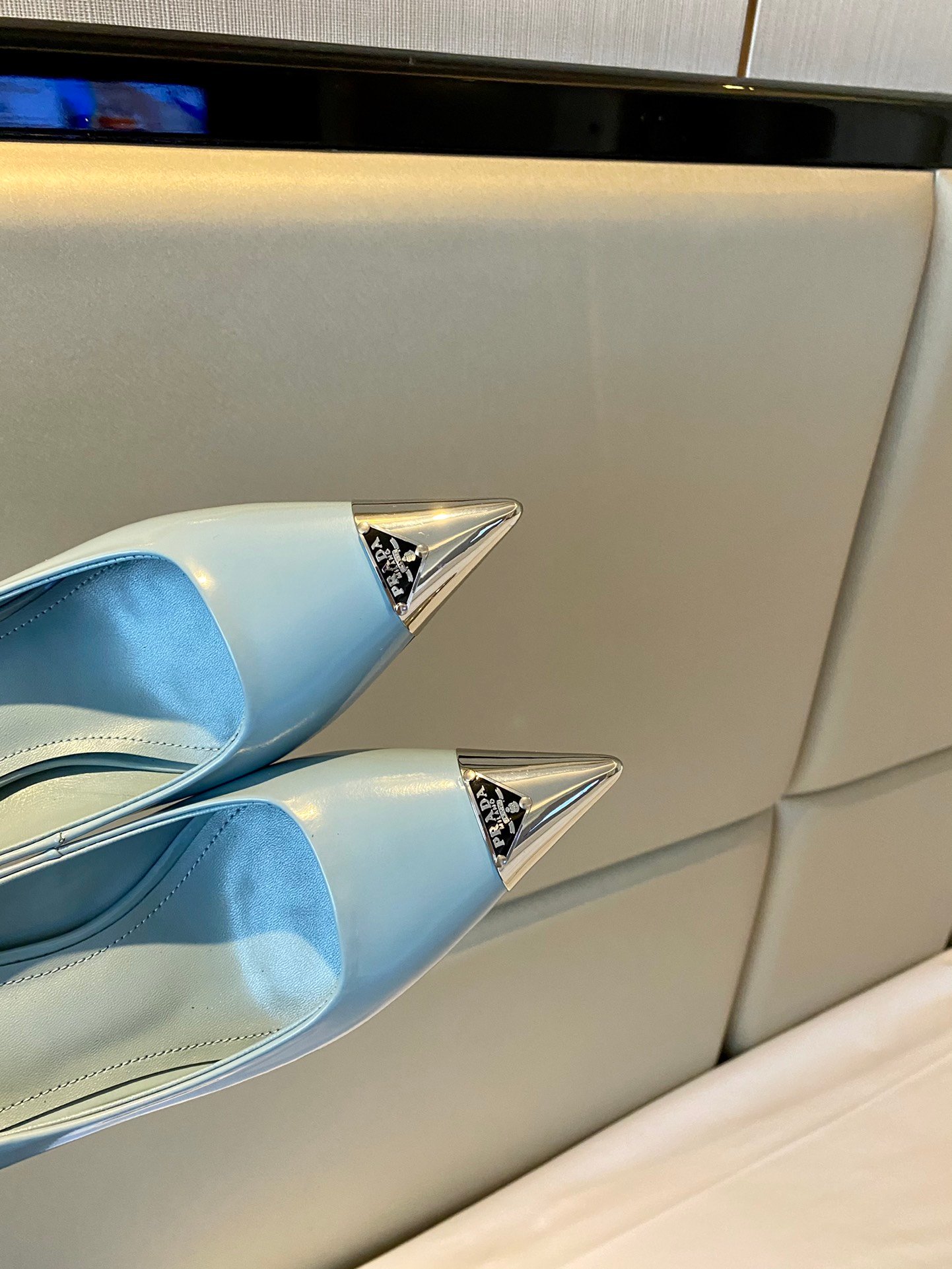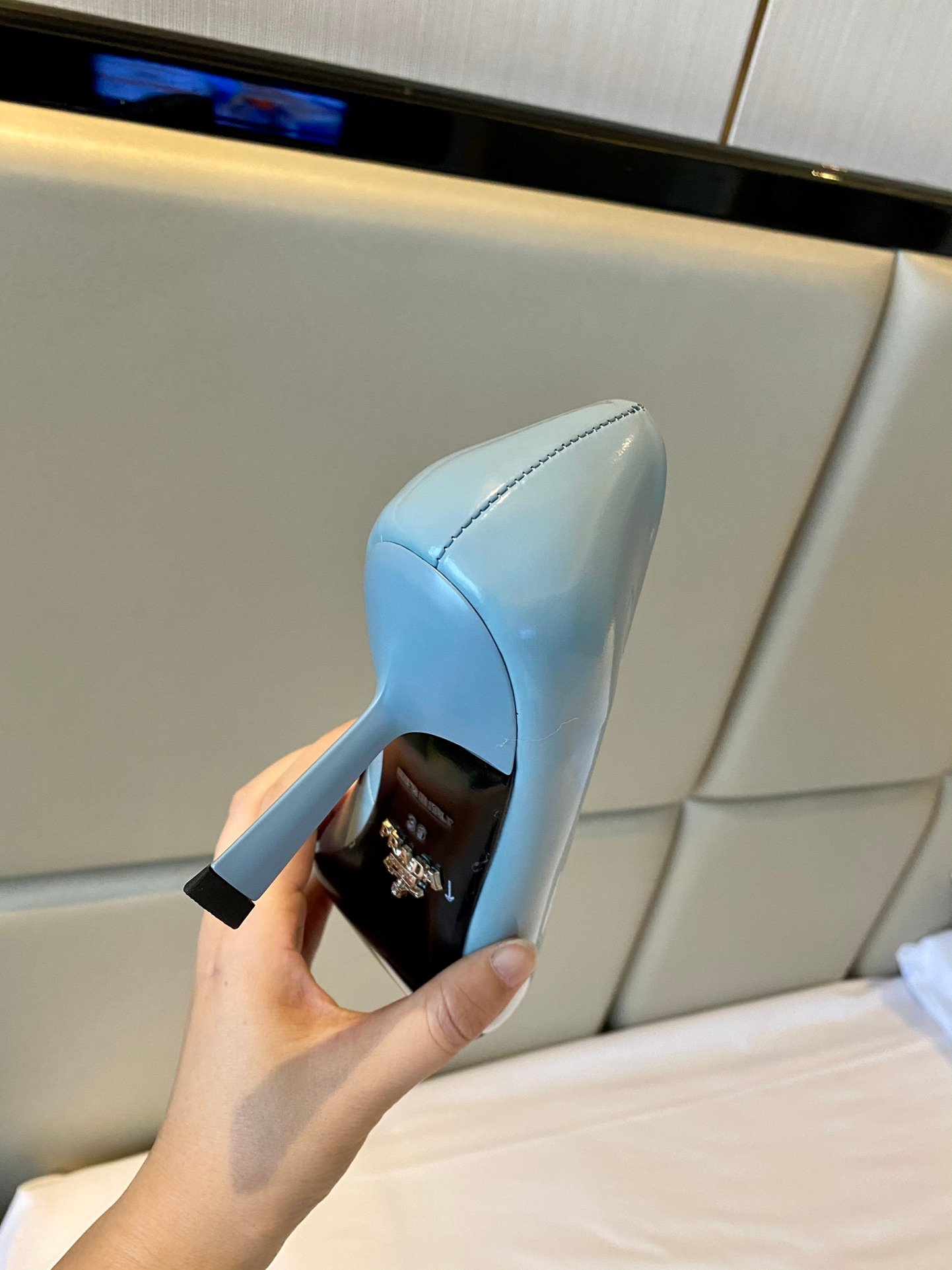 Prada 女式拉丝高跟鞋 蓝色 2.9 英寸/75 毫米 PRD