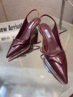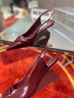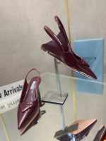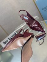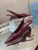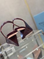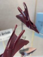 Prada 拉丝女式露跟高跟鞋酒红色 2.6 英寸/65 毫米 PRD