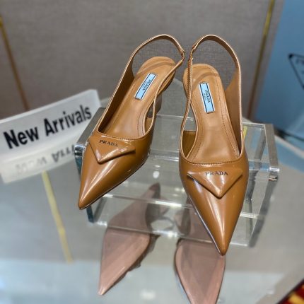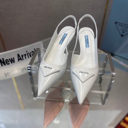 极简主义和女性气质在露跟鞋(Prada 系列的标志性风格)的全新诠释中相遇。尖头鞋型和现代主义坡跟鞋款重新演绎了该品牌独特三角形的几何形状,其形状启发了鞋跟结构以及包覆和轻微加垫的前部细节。体积和结构的运用强调了鞋子干净、果断的线条,采用精细拉丝和漆面制成。