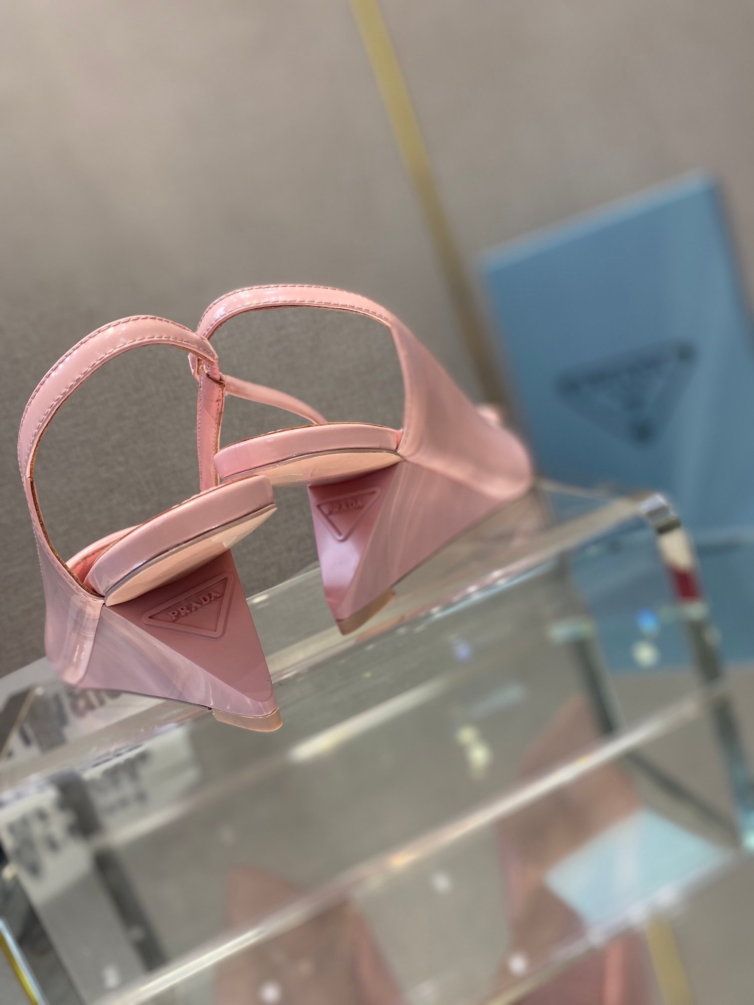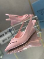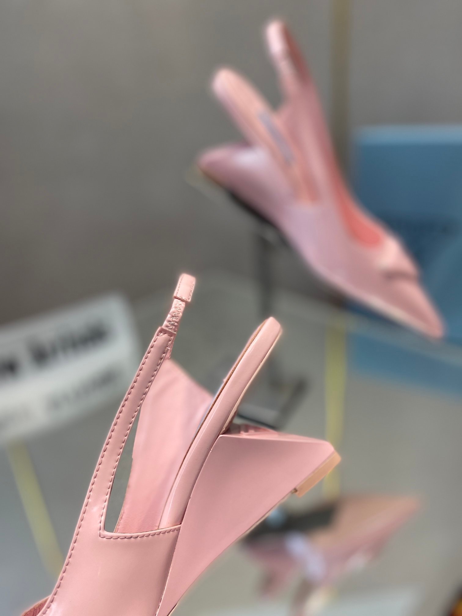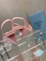 Prada 拉丝女式露跟高跟鞋粉色 2.6 英寸/65 毫米 PRD