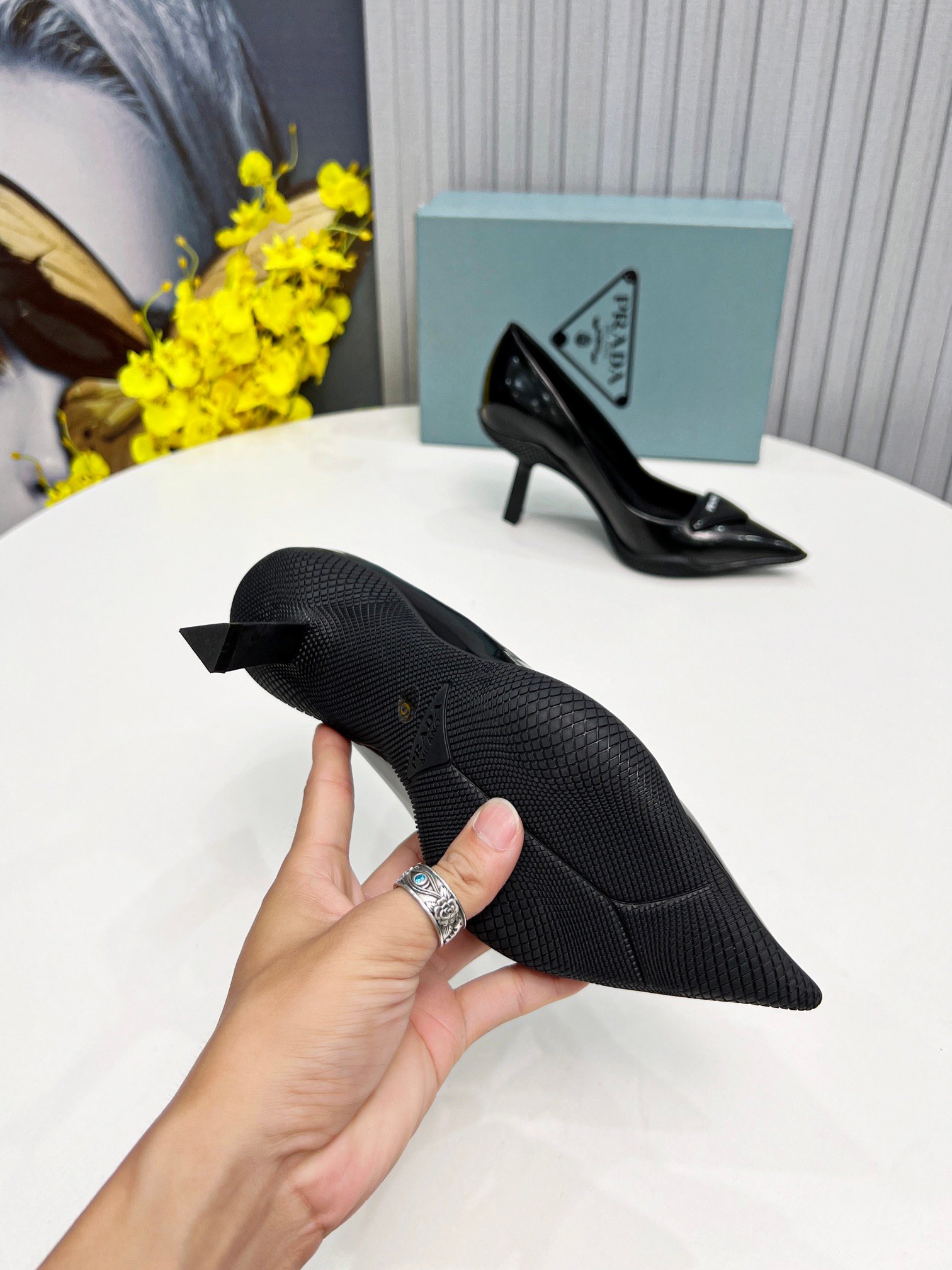 Prada 黑色女式拉丝露跟高跟鞋 PRD