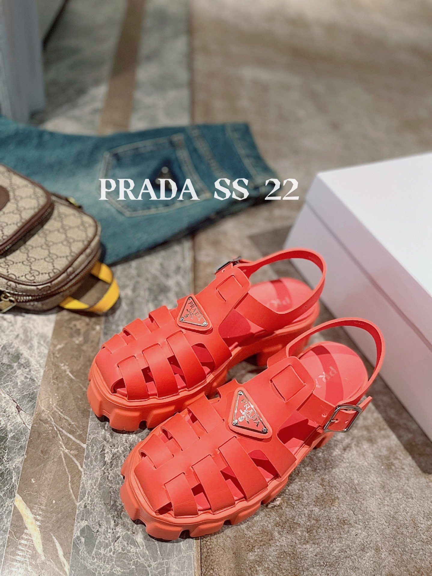 Prada 女式泡沫橡胶凉鞋 橙色 2.2 英寸/55 毫米 PRD