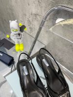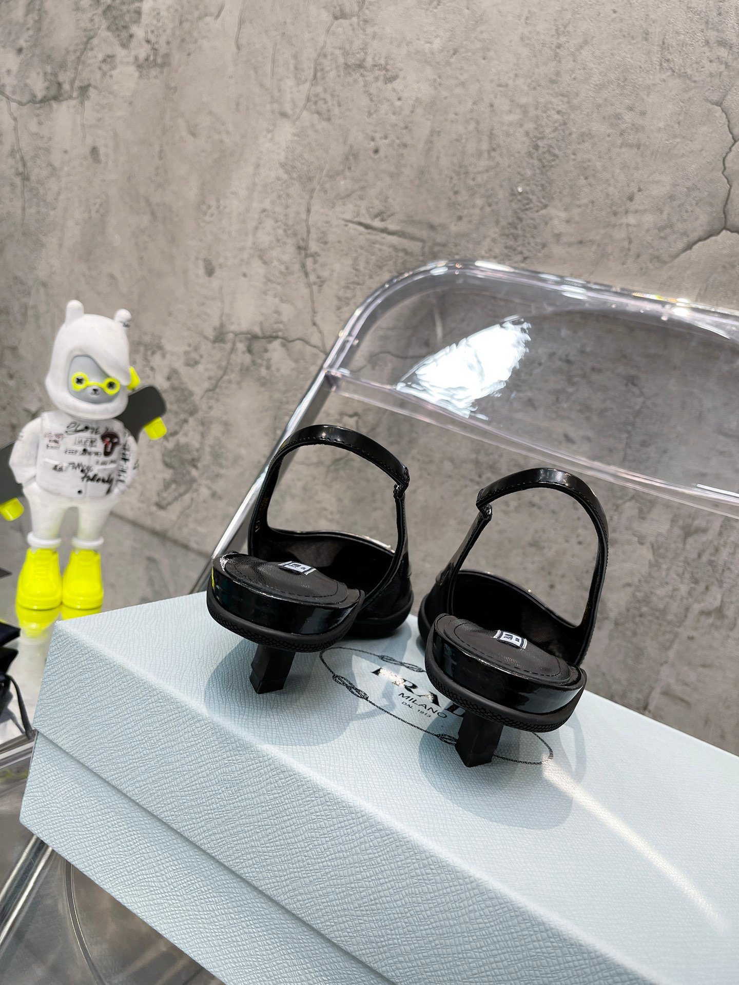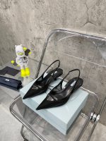重温 Prada 九十年代档案中的设计,橡胶鞋底紧贴这些露跟高跟鞋的网布鞋面,形成微妙的对比融合女性轮廓和运动风格的材料。逗号鞋跟的灵感源自同一十年的风格,是近期系列的独特风格。鞋子上有标志性的搪瓷金属三角标志。