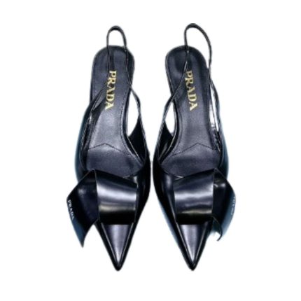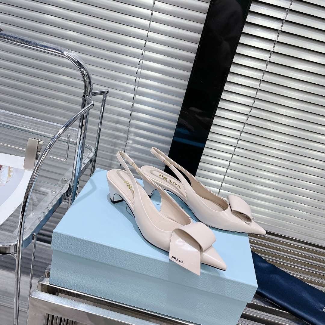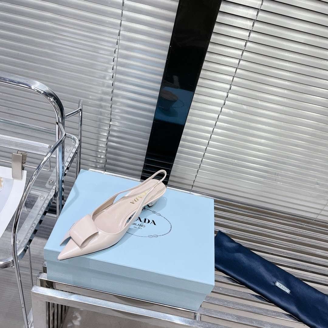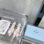 Prada 标志性的花朵形状为这些带子高跟鞋增添了诱人的美感。传统上用于高端经典鞋履,自 90 年代以来,拉绒在 Prada 系列中以现代设计进行了重新诠释,创造出反映品牌两侧的合成效果