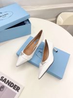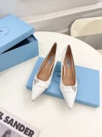 Prada 标志性的花朵形状为这些带子高跟鞋增添了诱人的美感。传统上用于高端经典鞋履,自 90 年代以来,拉绒在 Prada 系列中以现代设计进行了重新诠释,创造出反映品牌两侧的合成效果