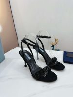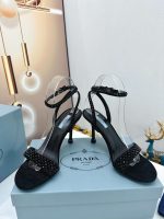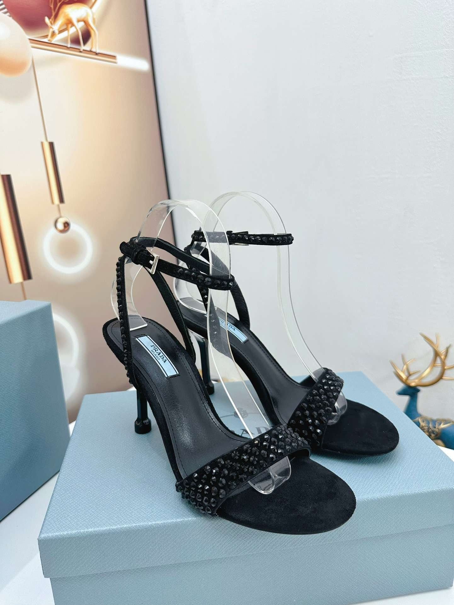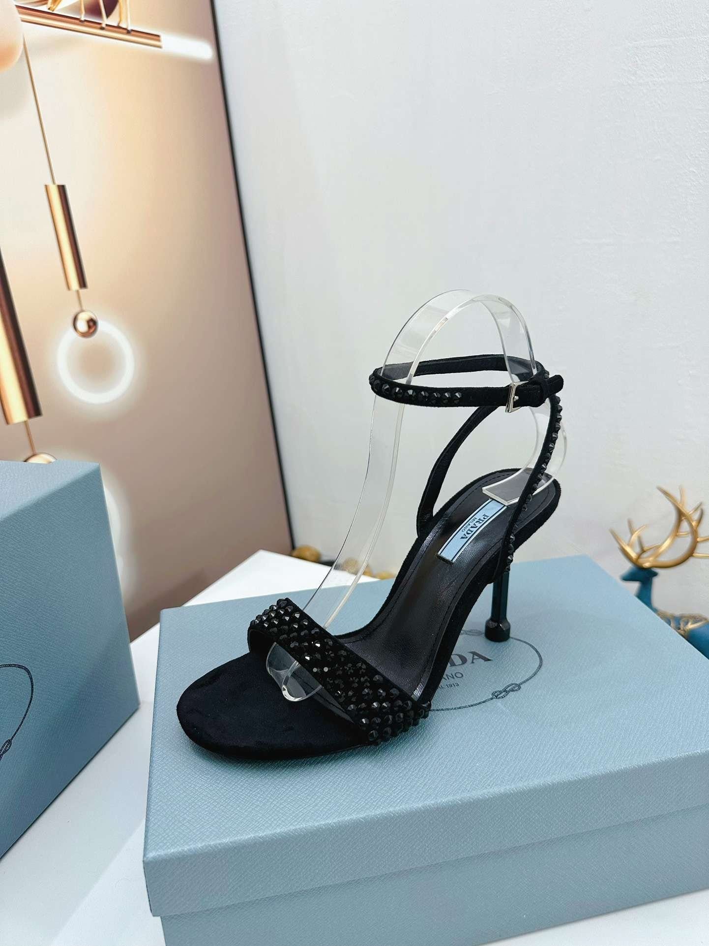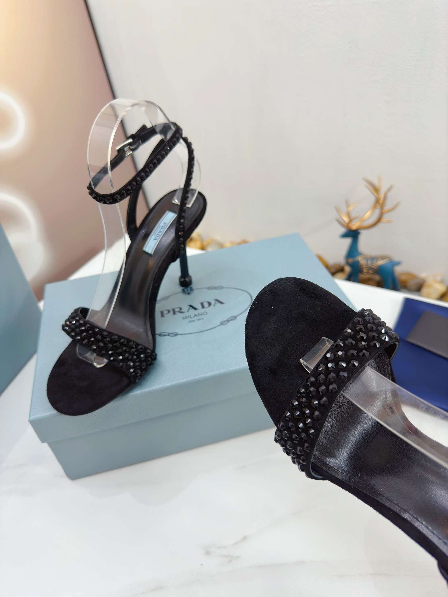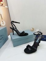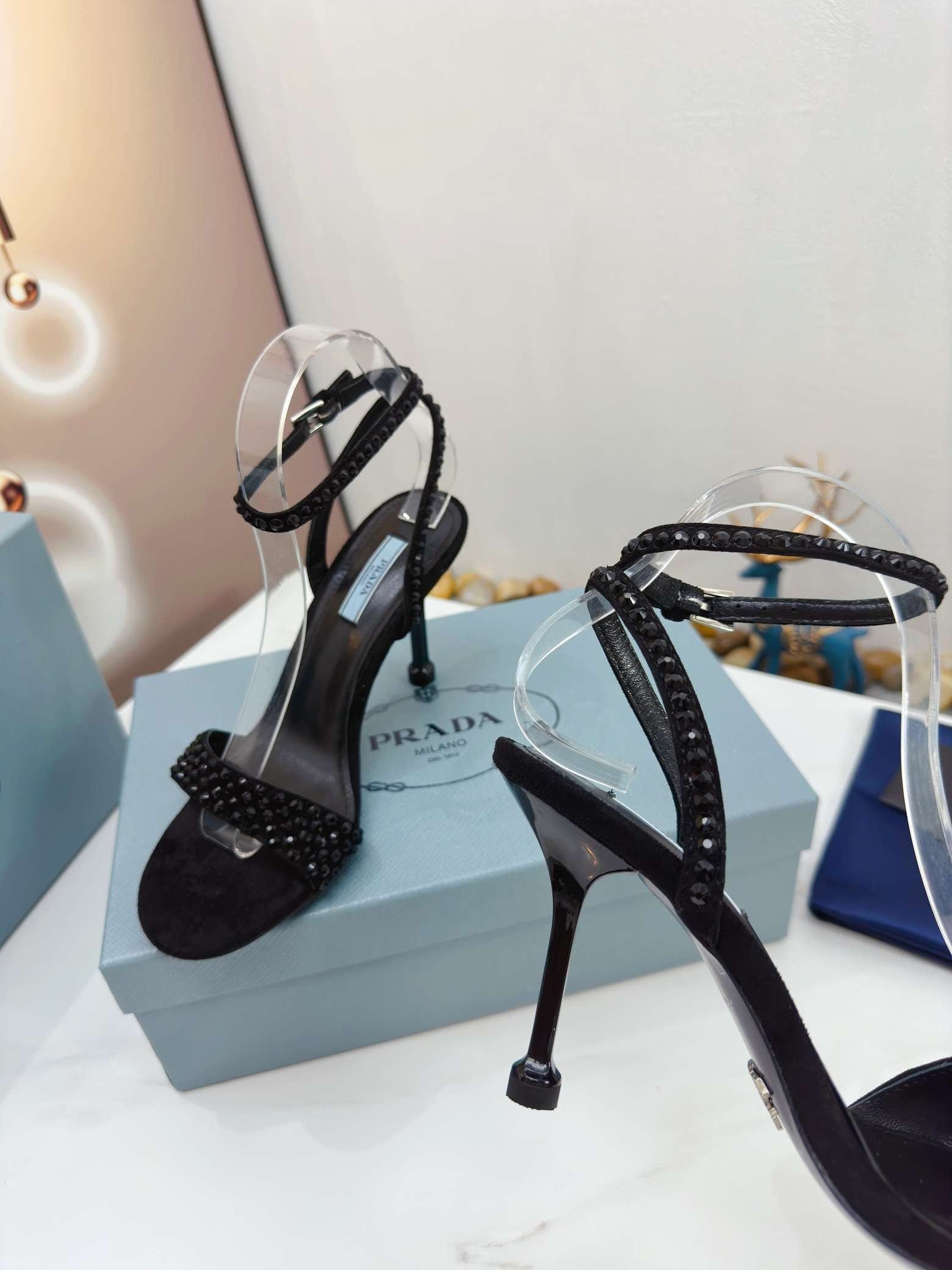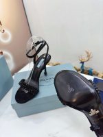 Prada 标志性的花朵形状为这些系带高跟鞋增添了诱人的美感。传统上用于高端经典鞋履,自 90 年代以来,拉绒在 Prada 系列中以现代设计进行了重新诠释,创造出反映品牌两侧的合成效果