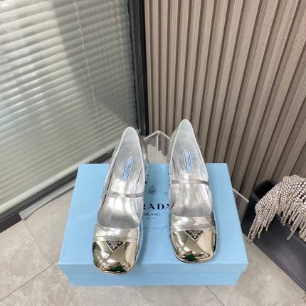 这些尖头高跟鞋采用拉丝制成,鞋跟涂有漆面,展现永恒的优雅。该鞋款饰有标志性的珐琅金属三角标志,该标志首次出现在 1913 年由 Mario Prada 设计的旅行箱上。