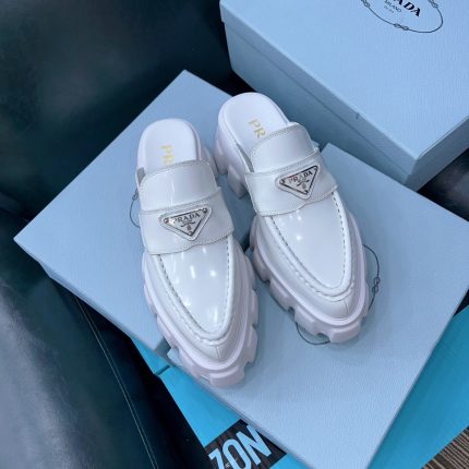 Prada 巧克力色拉丝穆勒鞋 白色 女式 1.6 英寸/40 毫米 PRD 1D652M_055_F0009_F_040