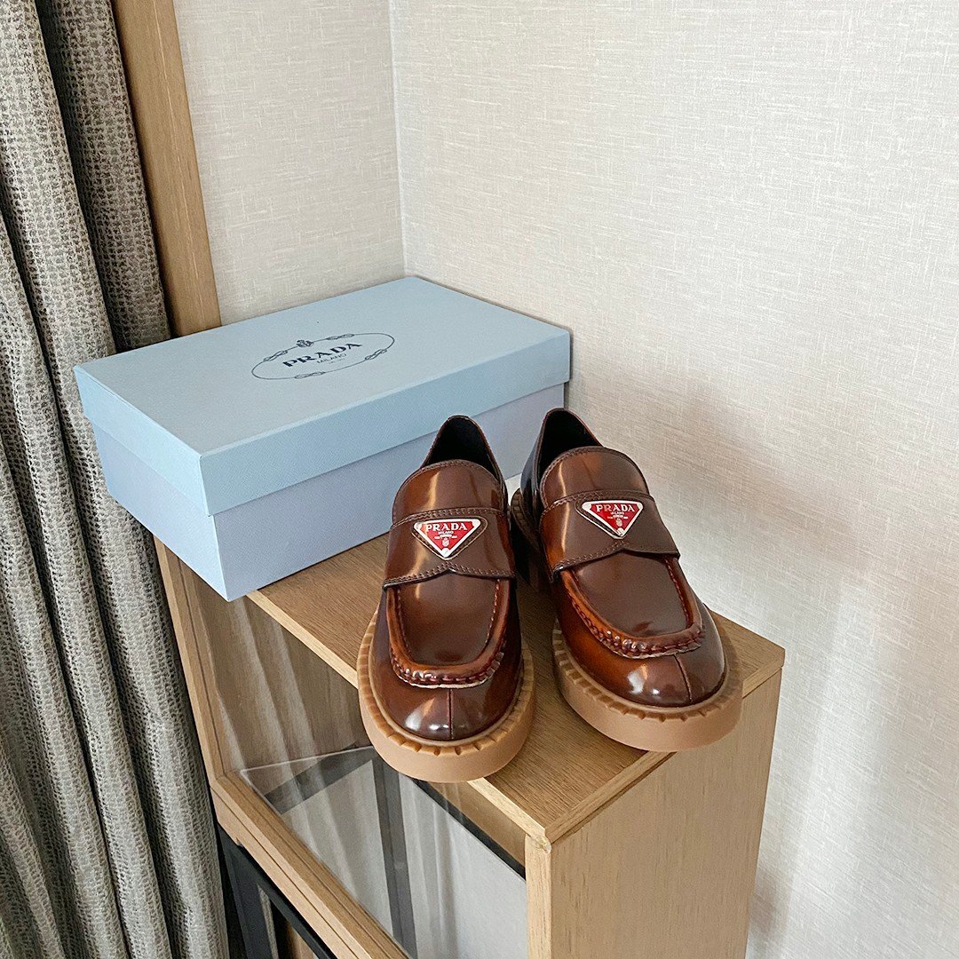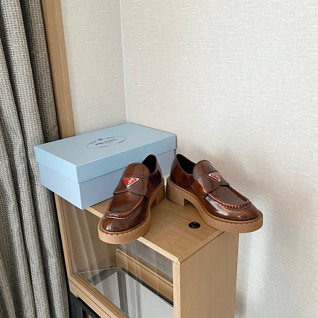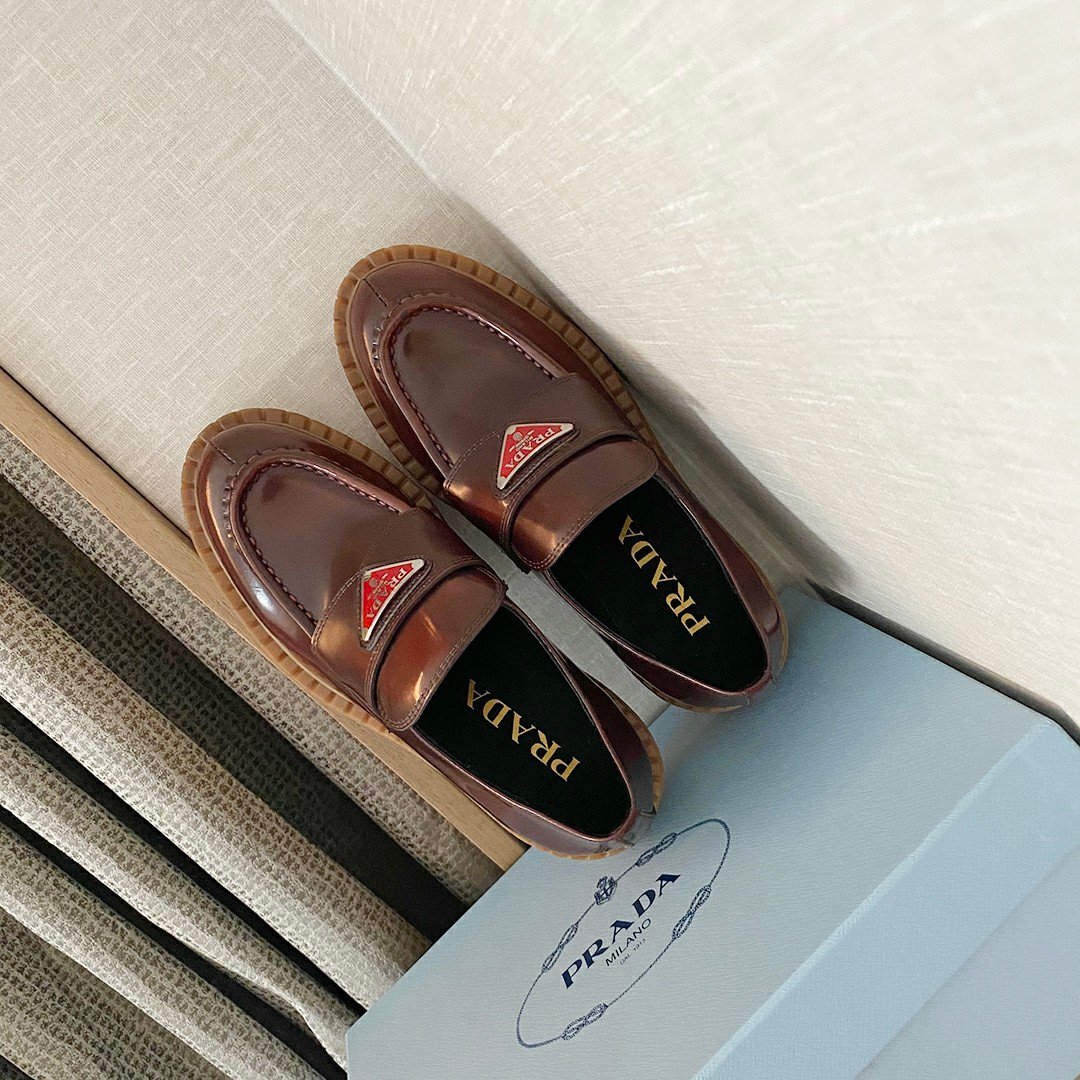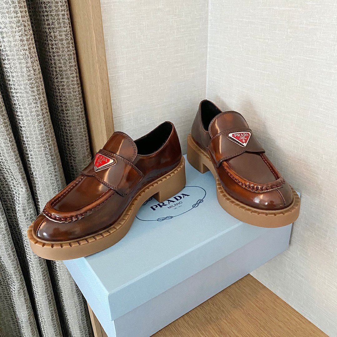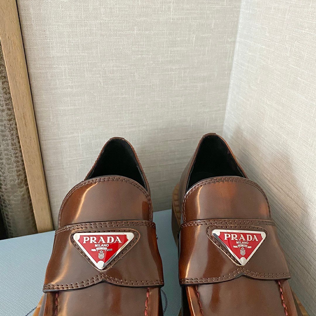 Prada 巧克力色锋利拉丝尖头乐福鞋棕色女式 1.6 英寸/40 毫米 PRD