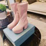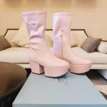 Prada 粉色徽标防水台女式靴子 2.9 英寸/7.5 厘米 PRD