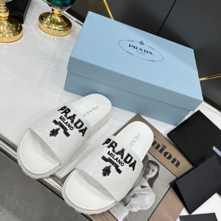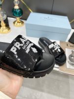 Prada 徽标细节亮片女式拖鞋黑色 1.4 英寸/35 毫米 PRD 1XX603F020959