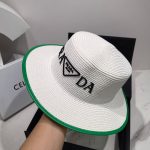 过去夏天的记忆激发了这款轻质拉菲草帽子的灵感,帽子上饰有 Prada 标志性字母徽标,此处以刺绣细节形式出现。颂扬自由和个性,色彩和风格融为一体,打造出具有海滩意象原型的现代复合系列。