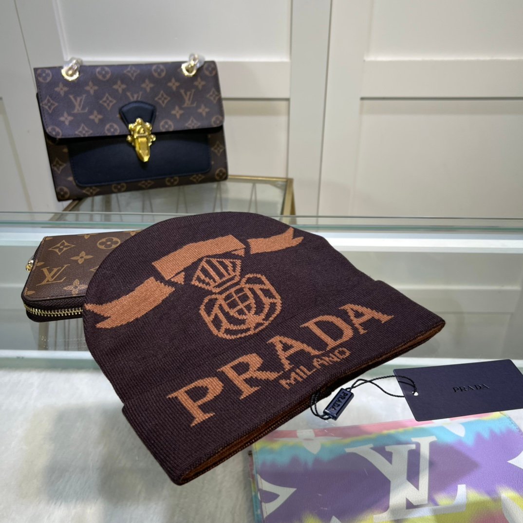 Prada 棕色无檐小便帽