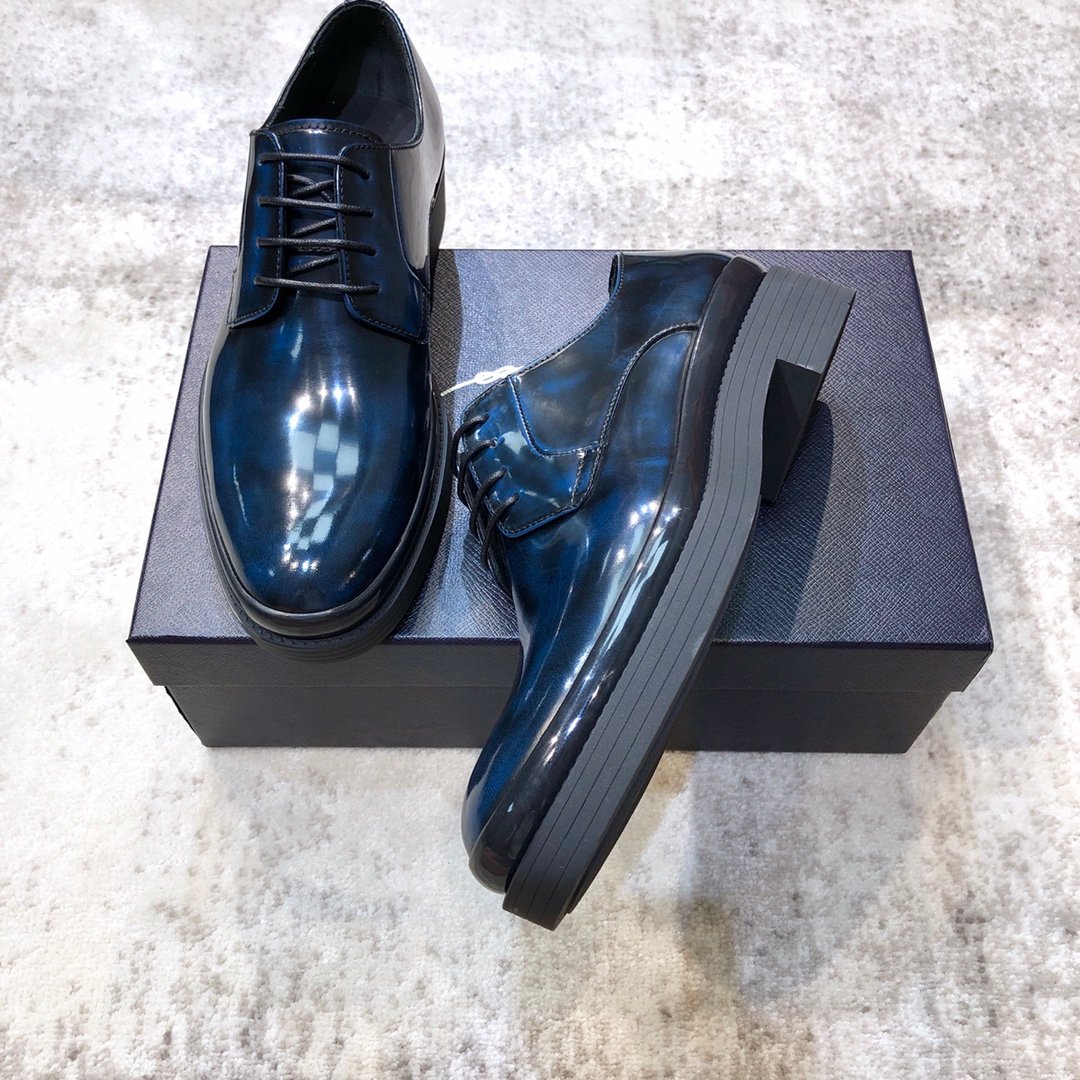 Prada 男士拉绒德比鞋 深蓝色 1 英寸/25 毫米 PRD