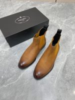 Prada 男士棕色拉丝切尔西靴 1 英寸/25 毫米 PRD