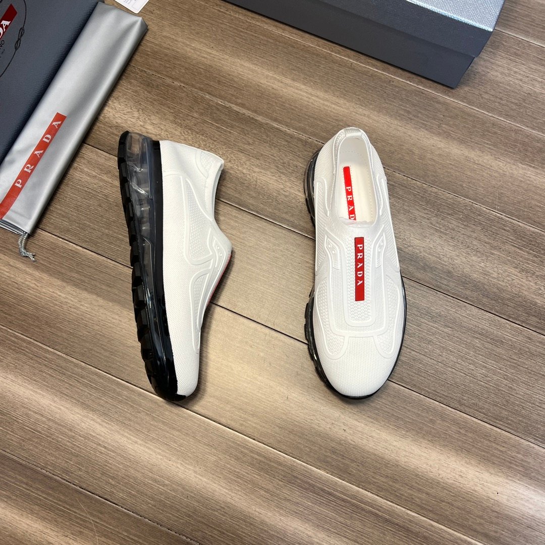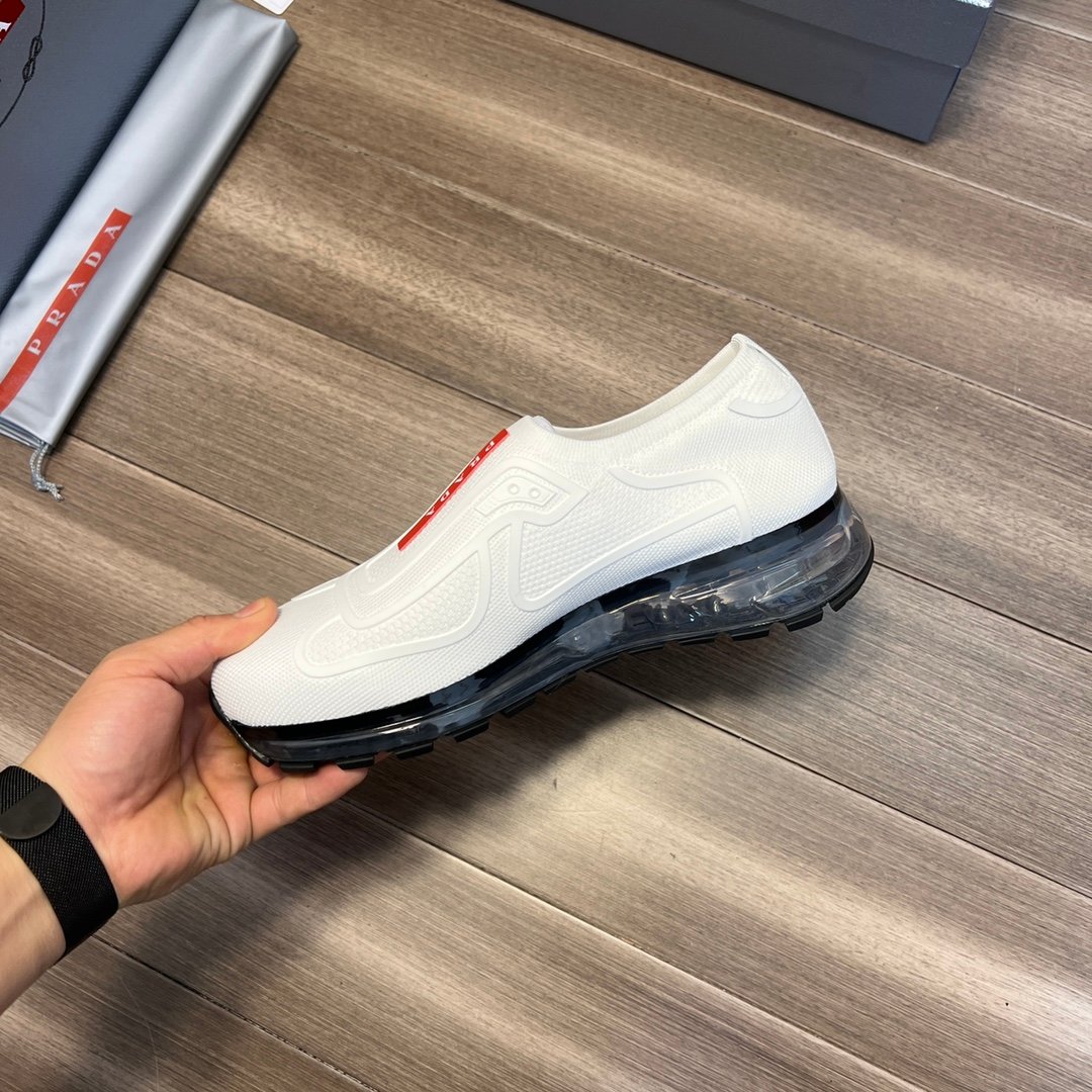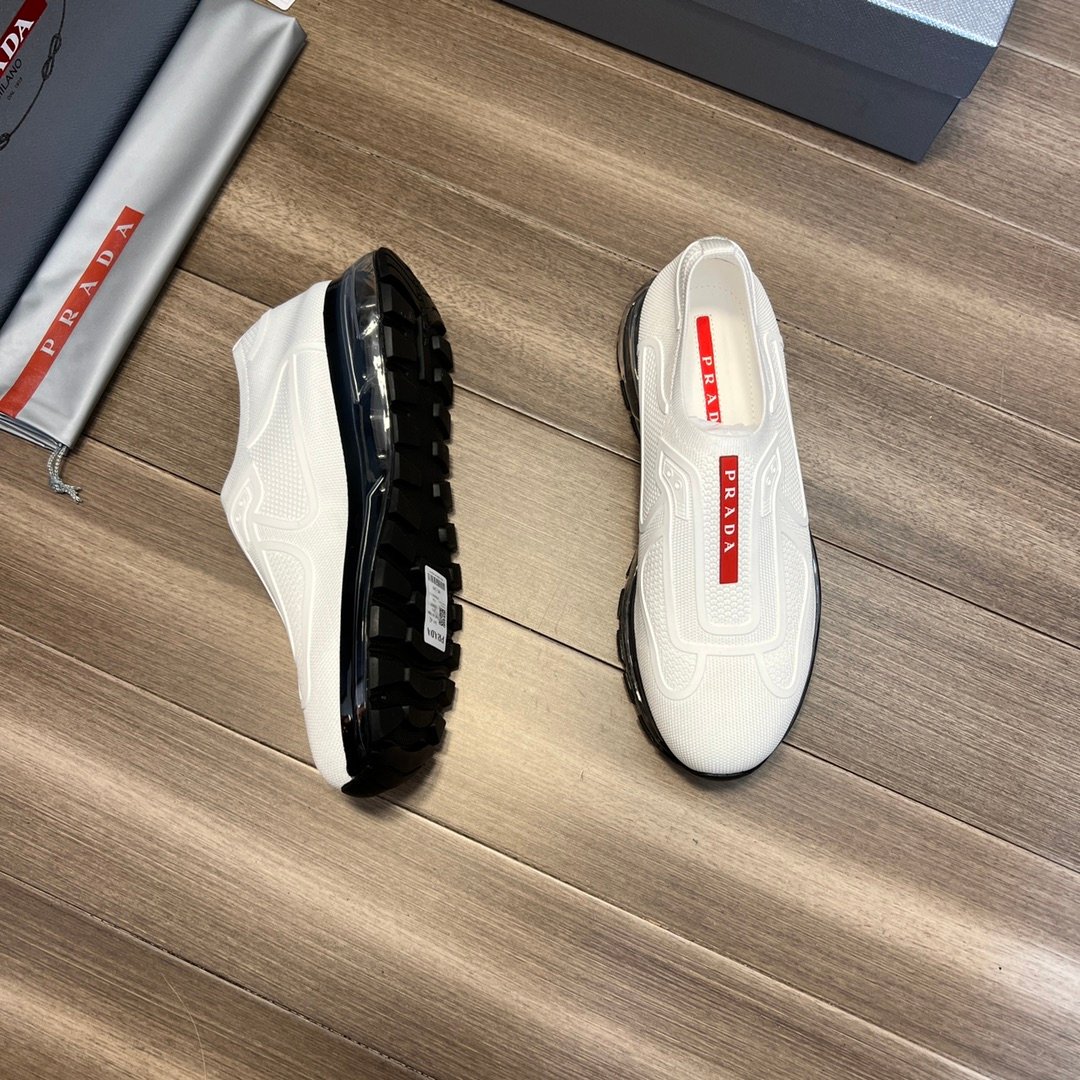 Prada 男士白色针织面料运动鞋 1.4 英寸/35 毫米 PRD