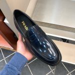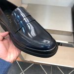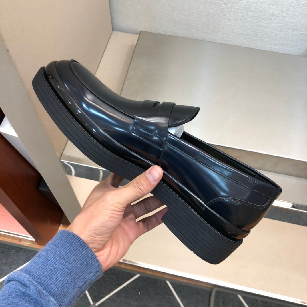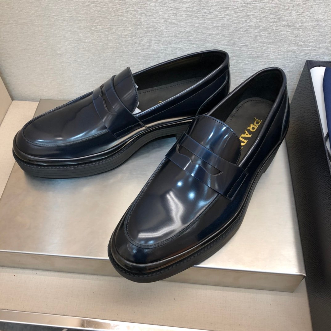 Prada 男士蓝色拉丝乐福鞋 1.6 英寸/40 毫米 PRD
