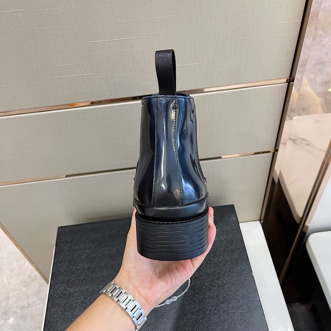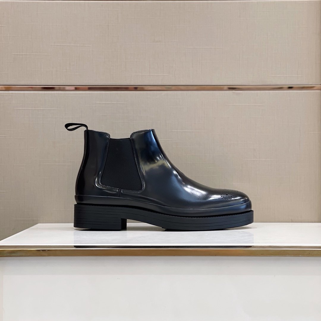 Prada 男士闪亮黑色拉丝切尔西靴 1.8 英寸/45 毫米 PRD
