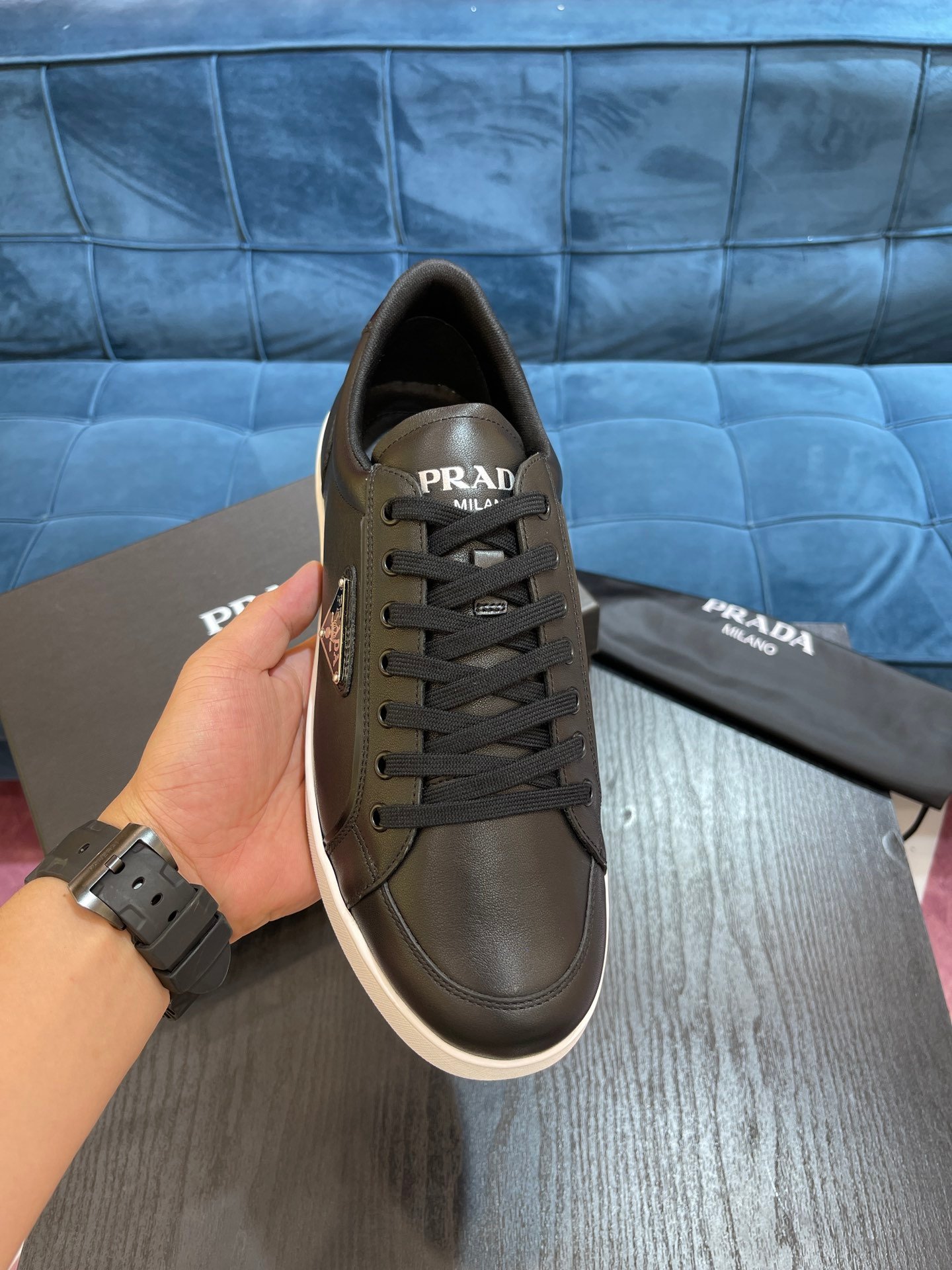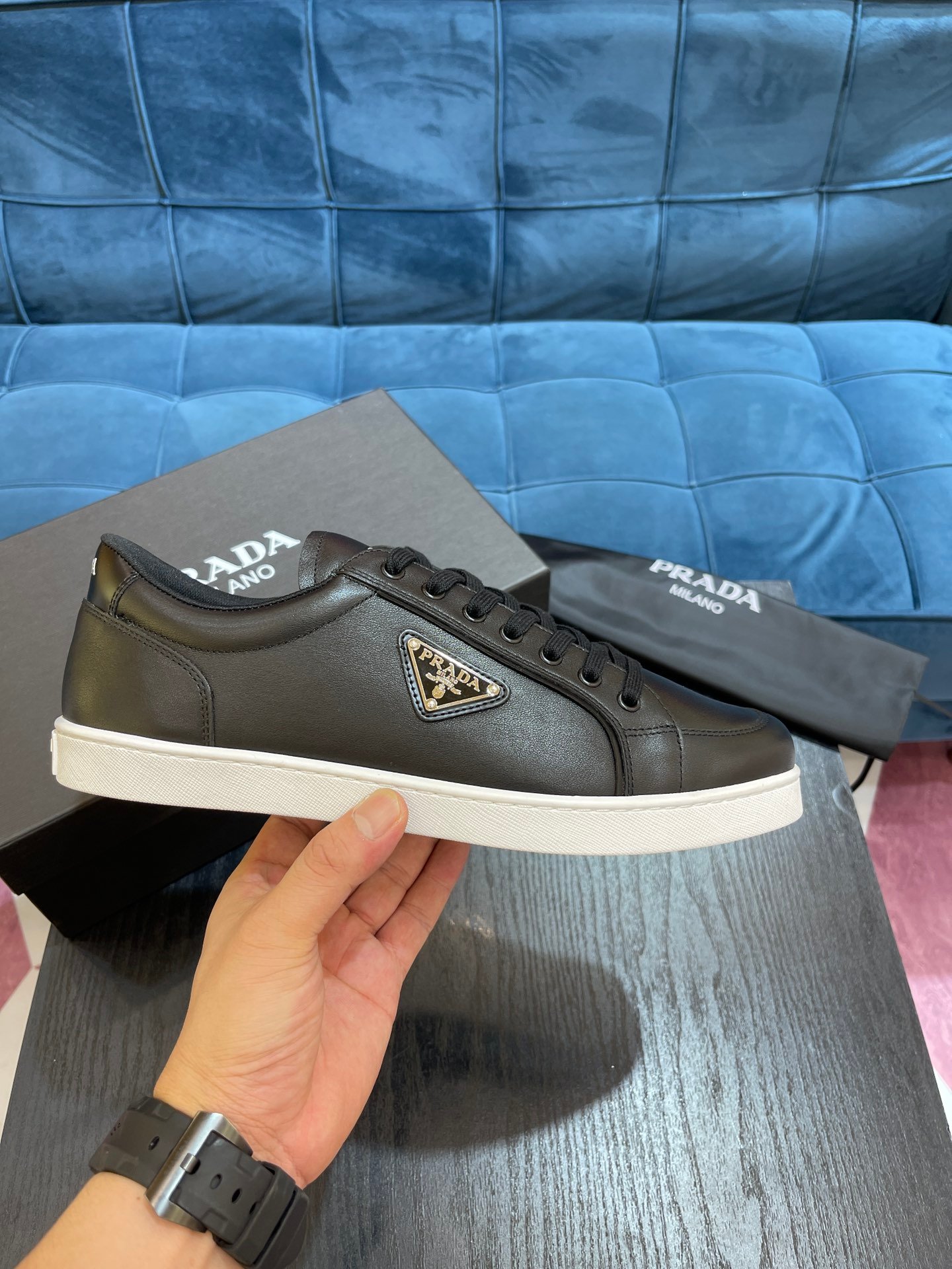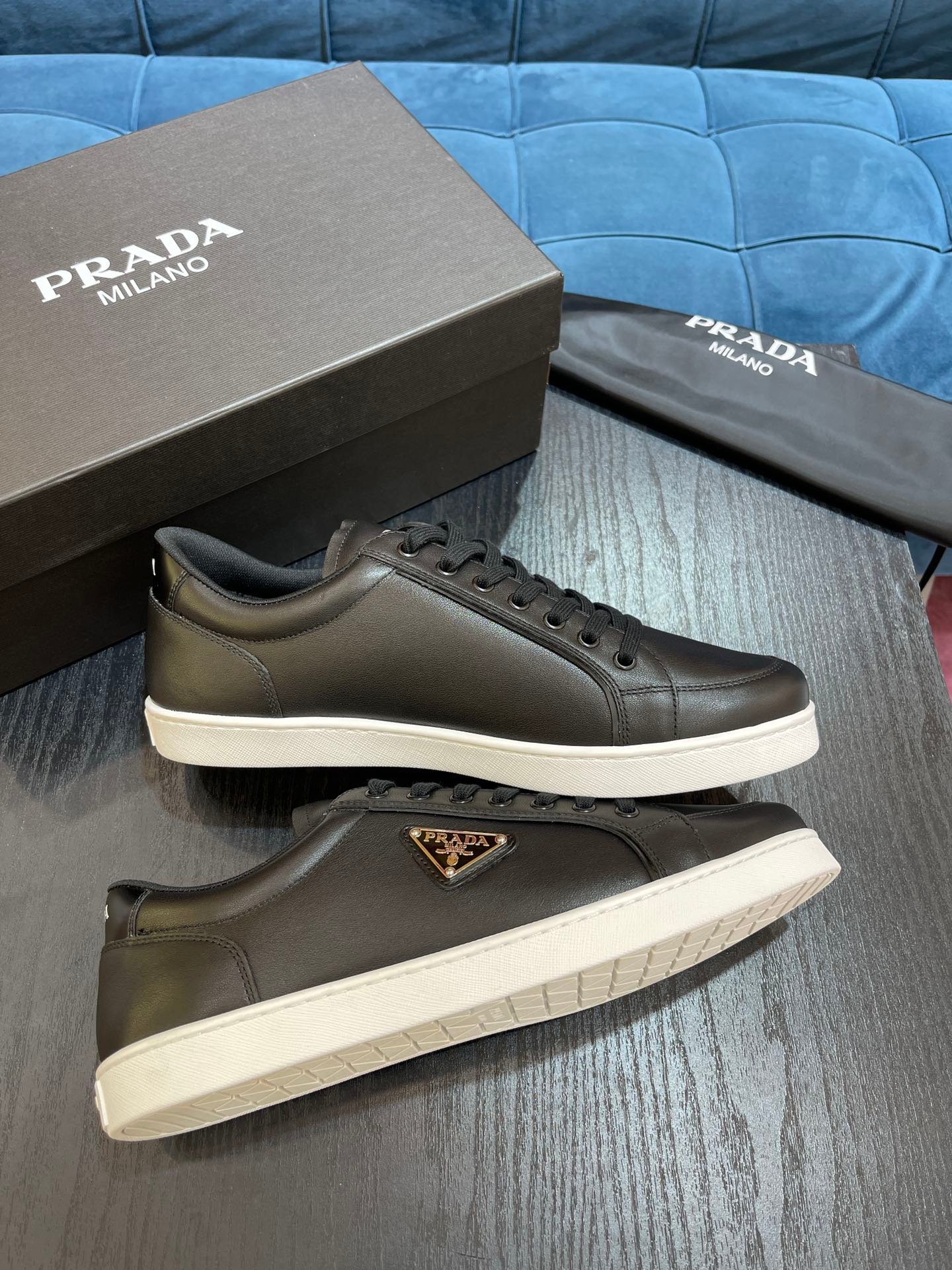 Prada 男士黑色拉丝运动鞋 1 英寸/25 毫米 PRD