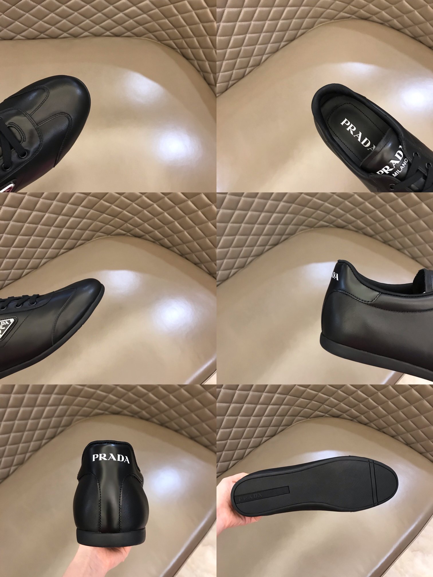 Prada 男士 PRD 黑色拉丝运动鞋