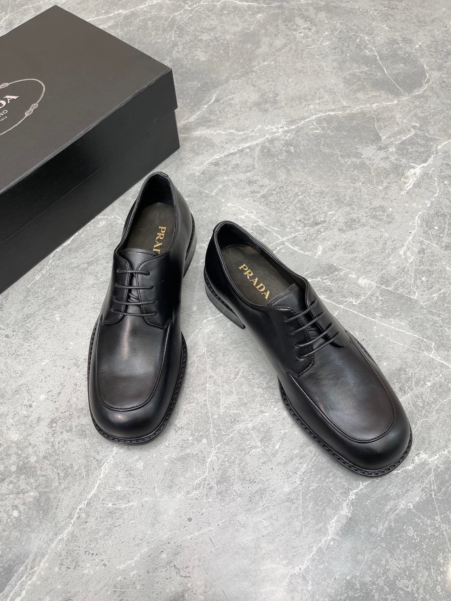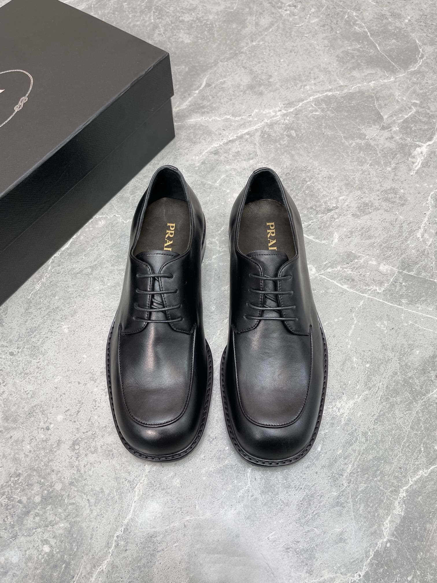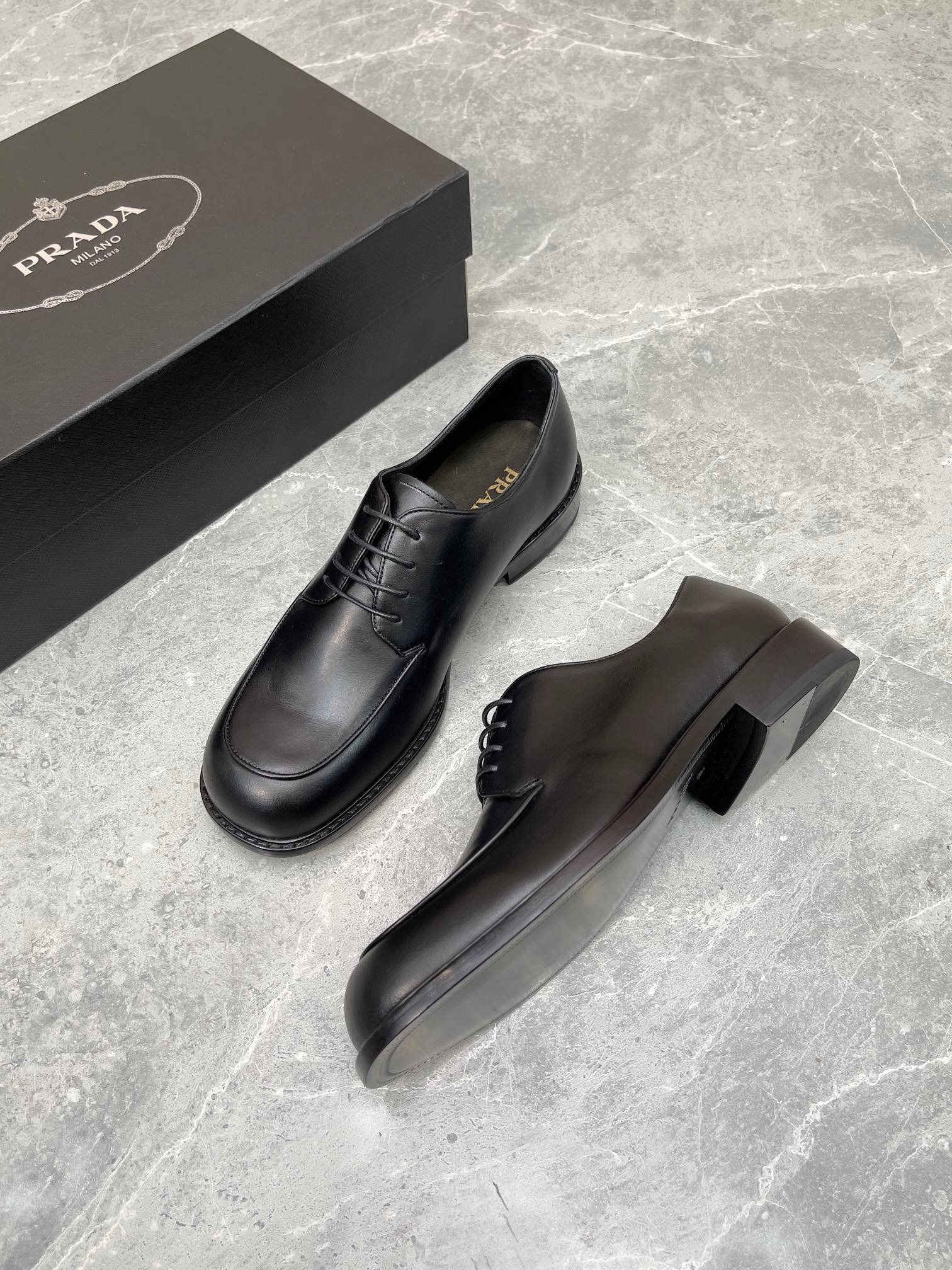 Prada 男士闪亮黑色拉绒鞋 1 英寸/25 毫米 PRD