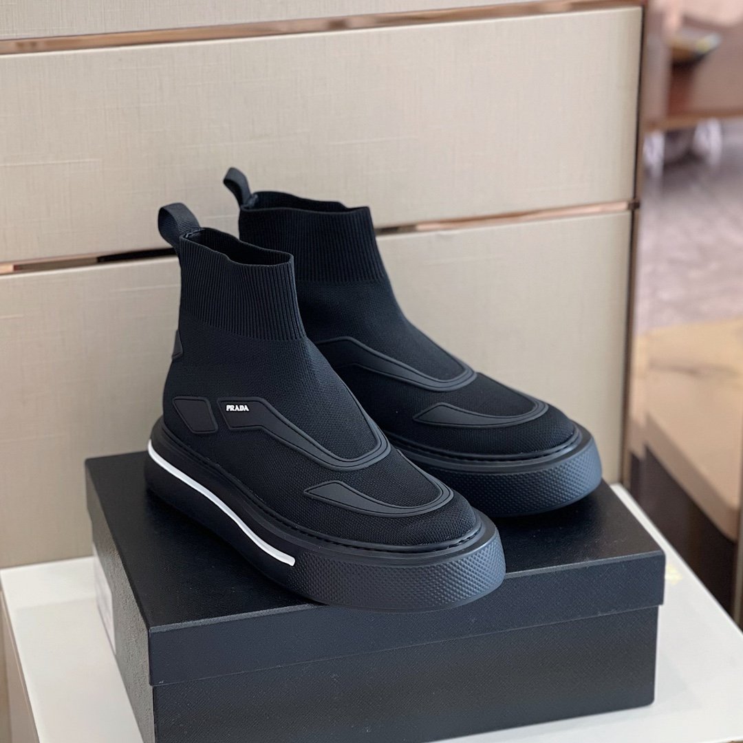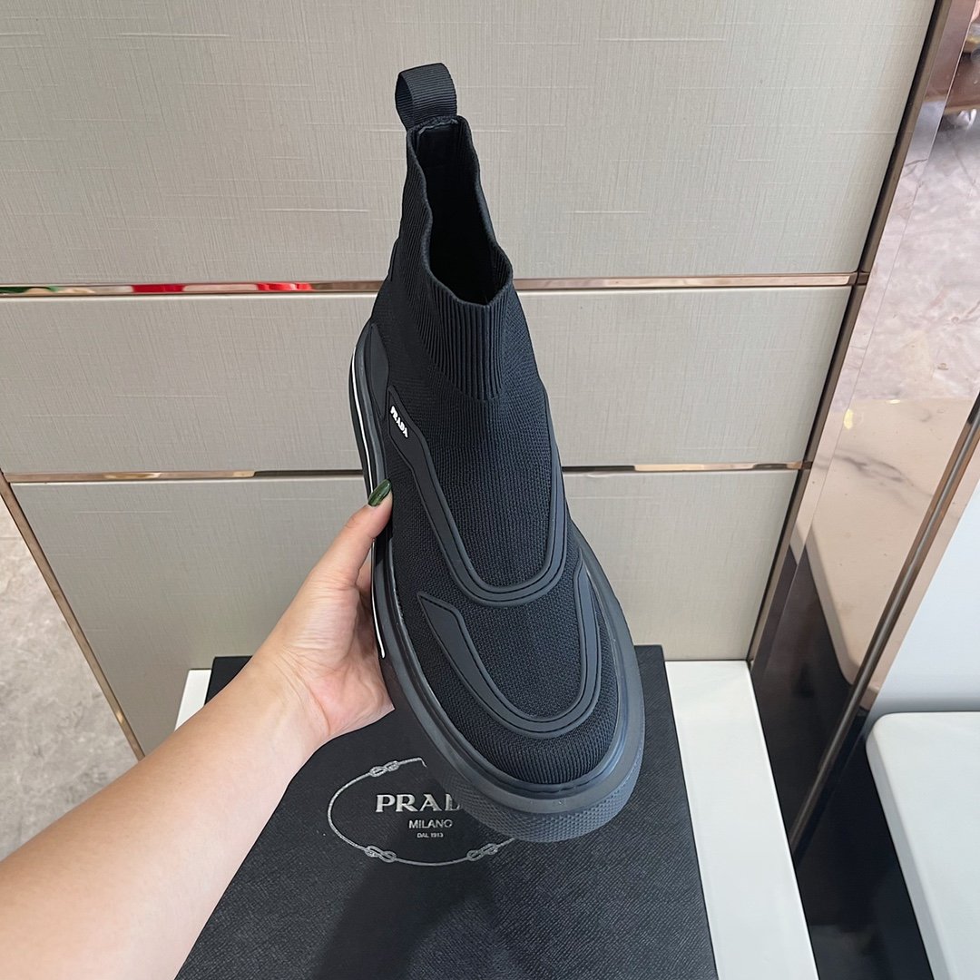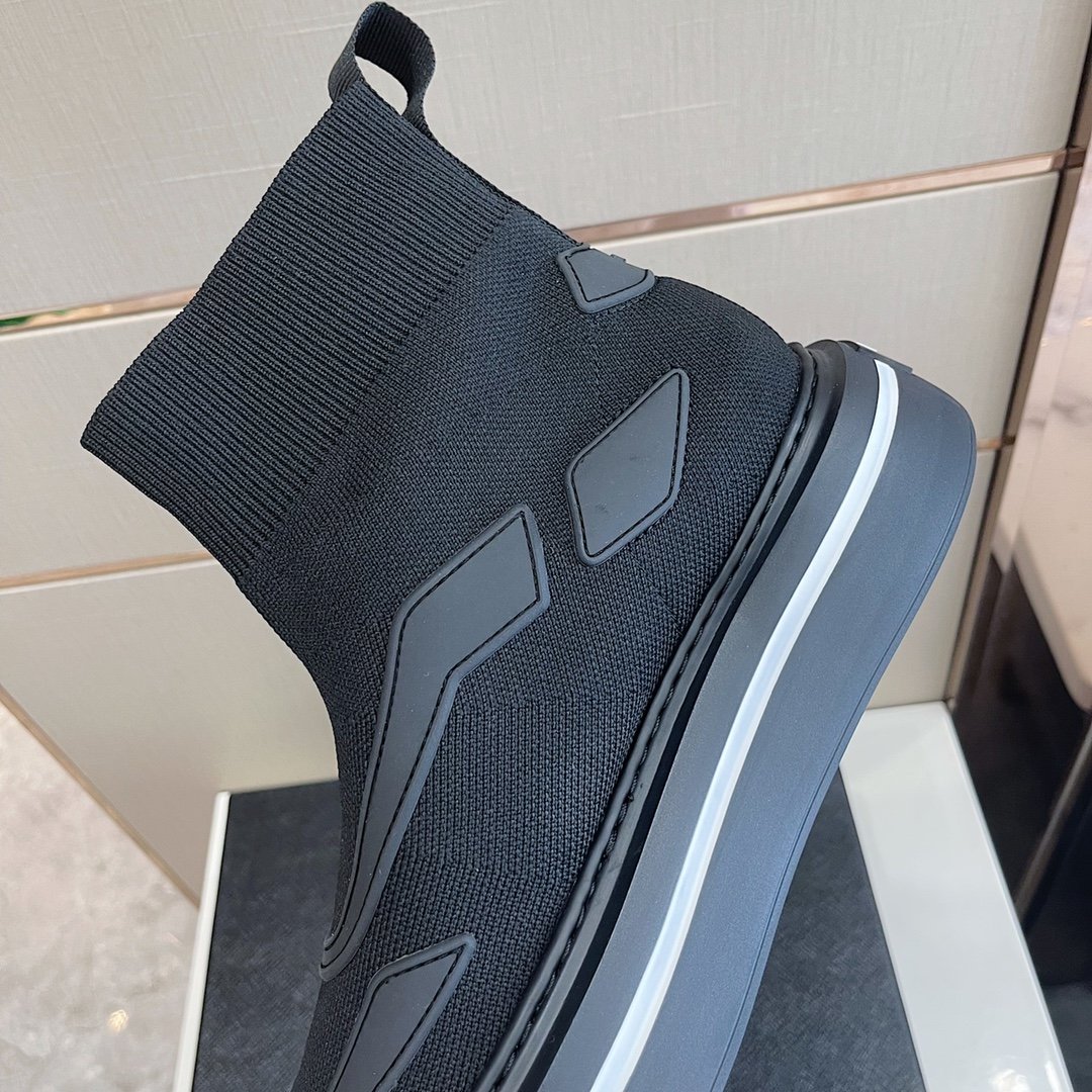 Prada 男士黑色针织面料靴子 1.4 英寸/35 毫米 PRD