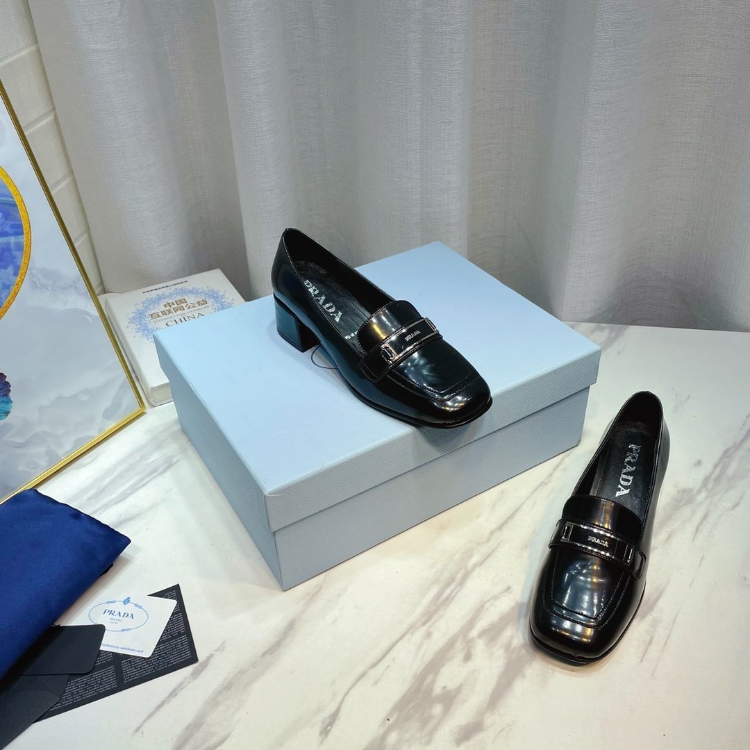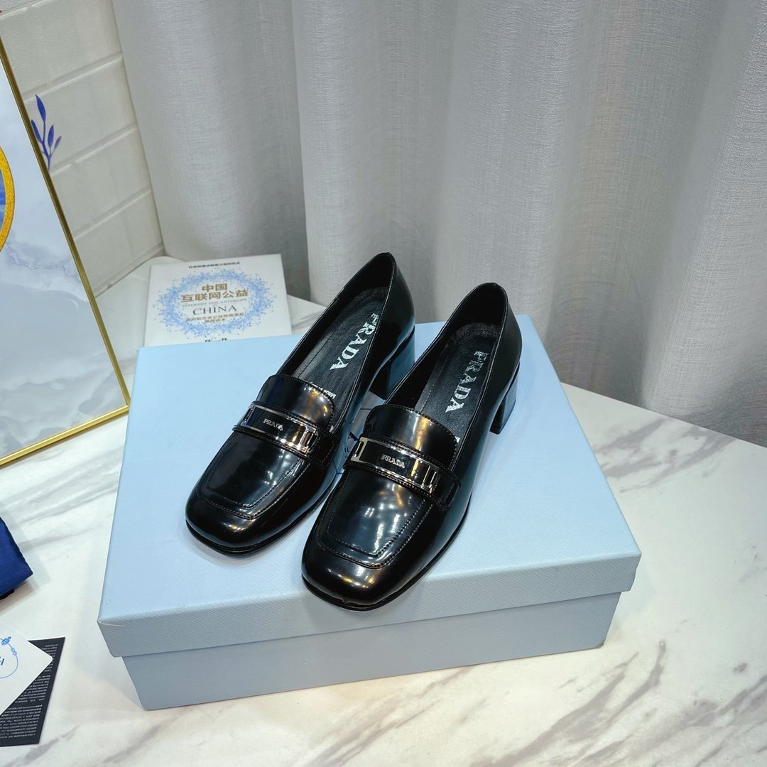 Prada 黑色拉丝乐福鞋 2.17 英寸/55 毫米 女式 PRD
