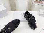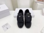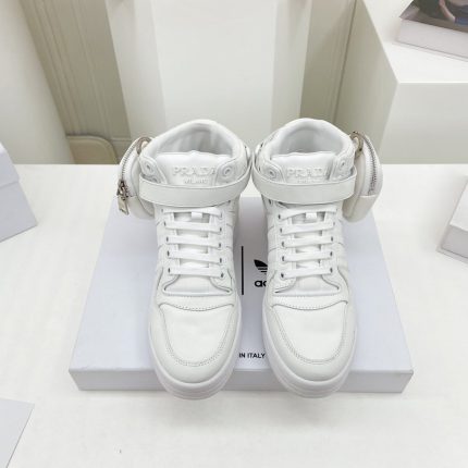鞋面配有可拆卸小袋,饰有 Prada 珐琅金属三角形徽标