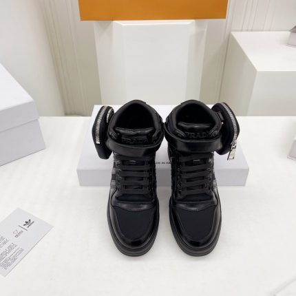 鞋面配有可拆卸小袋,饰有 Prada 珐琅金属三角形徽标