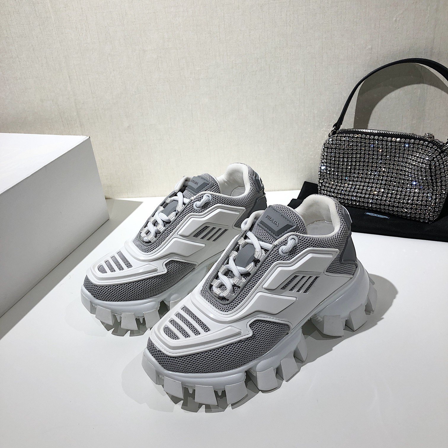 Prada Cloudbust Thunder 女式灰色和白色运动鞋 PRD