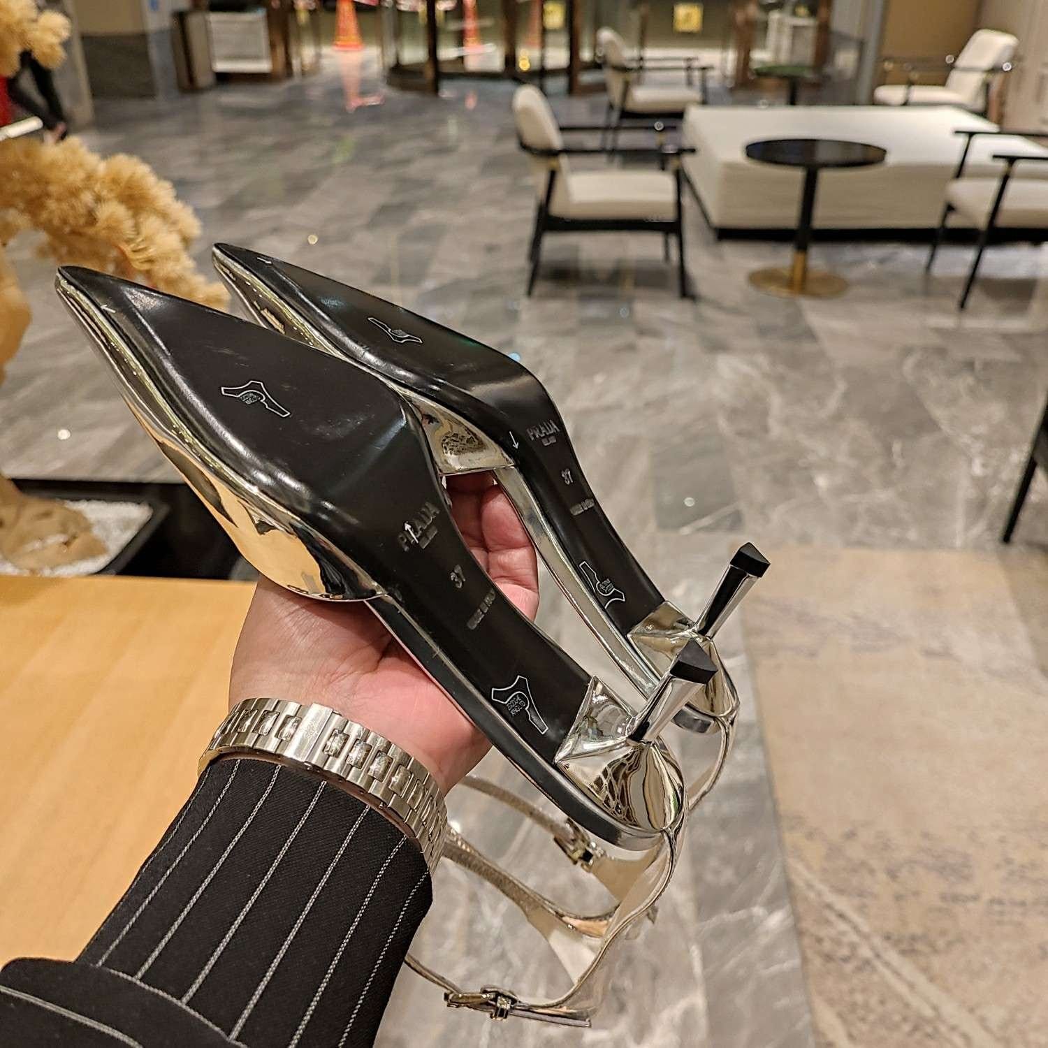 Prada Hilda 高跟鞋银色